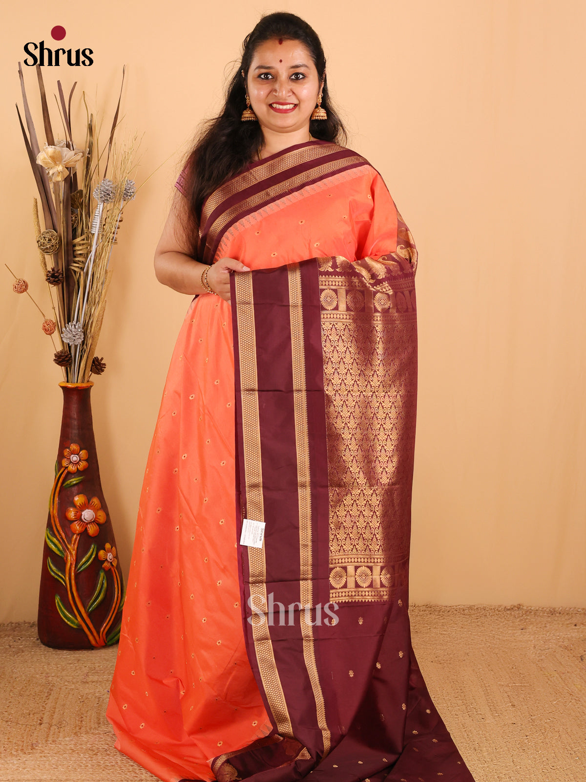 Orange with Brown-Gadwal Half pure Saree - DDS04109