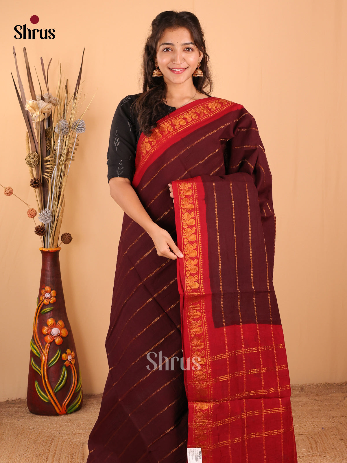 Brown with Red - DDS15116 - Sungudi Cotton Saree