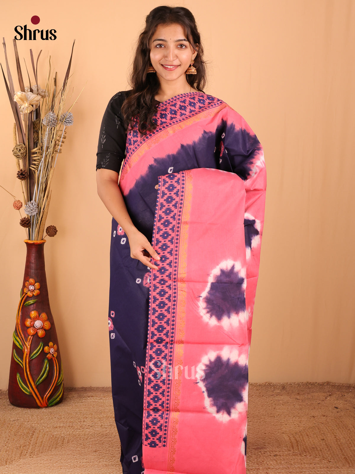 Blue with Pink - DDS15344 - Sungudi Cotton Saree