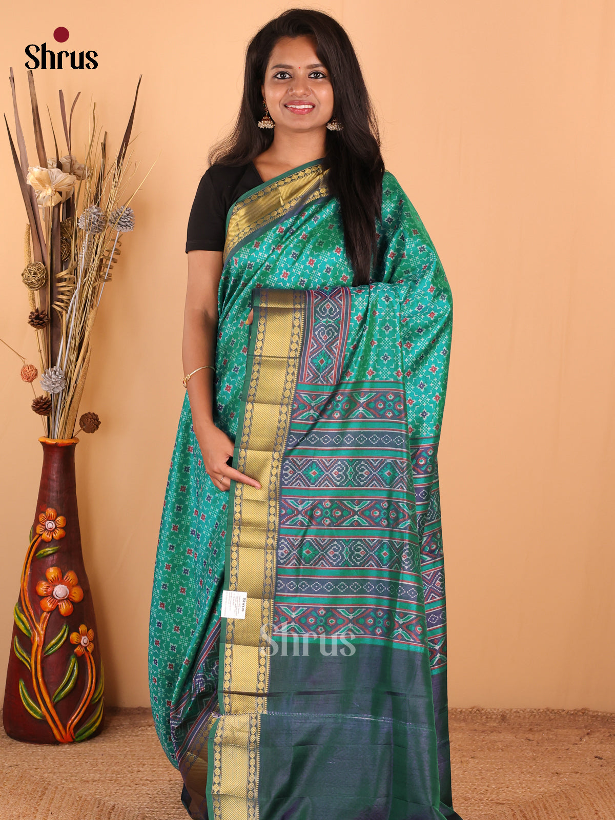Green with Blue - DDS16065 - Semi Patola Saree