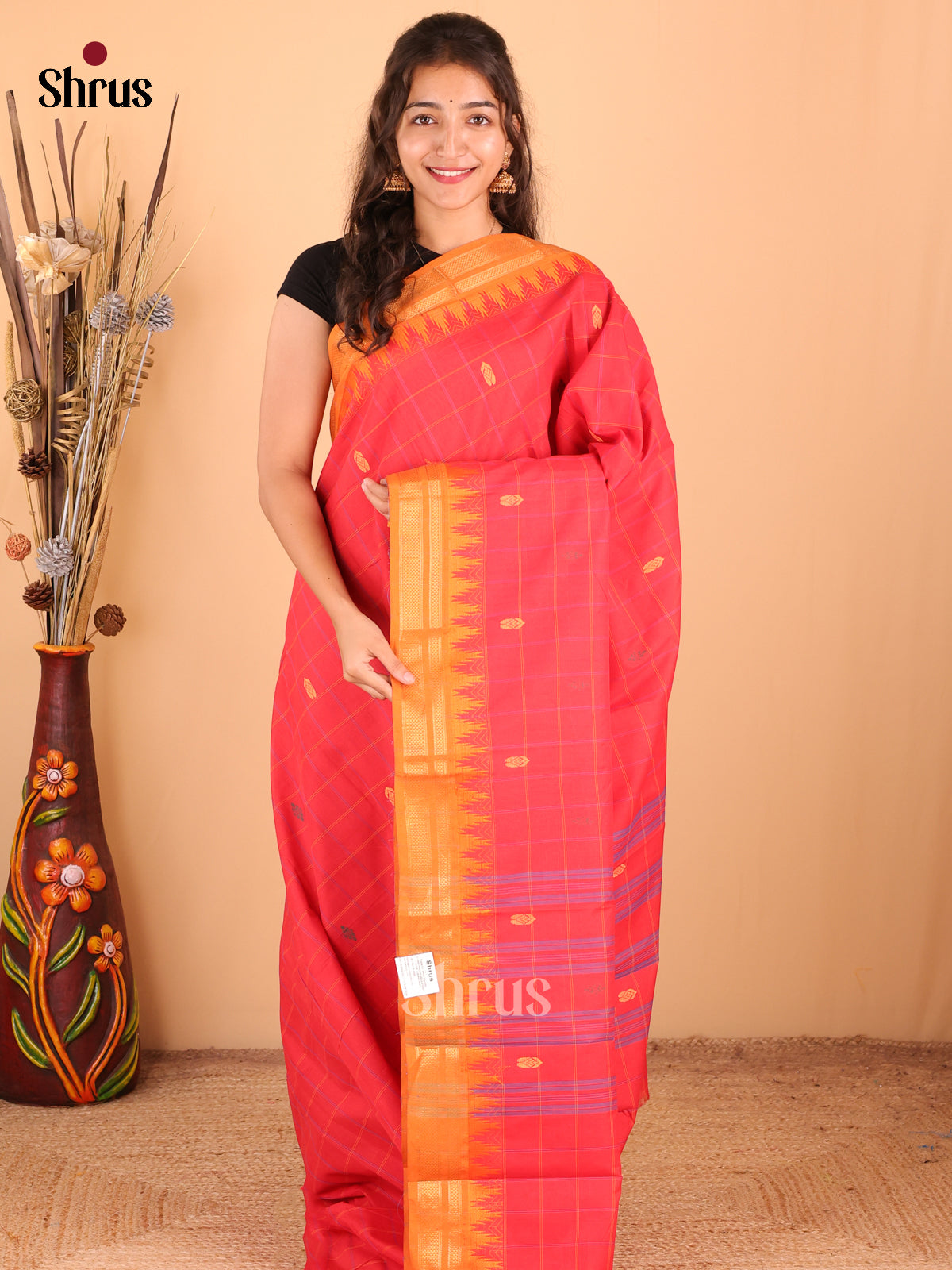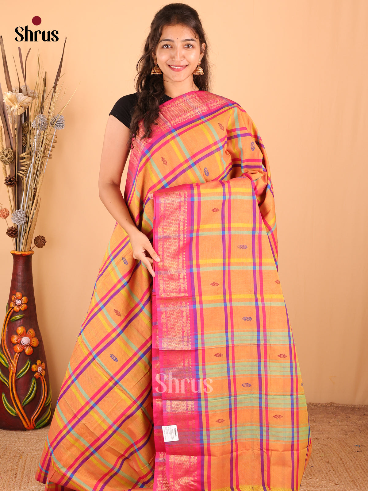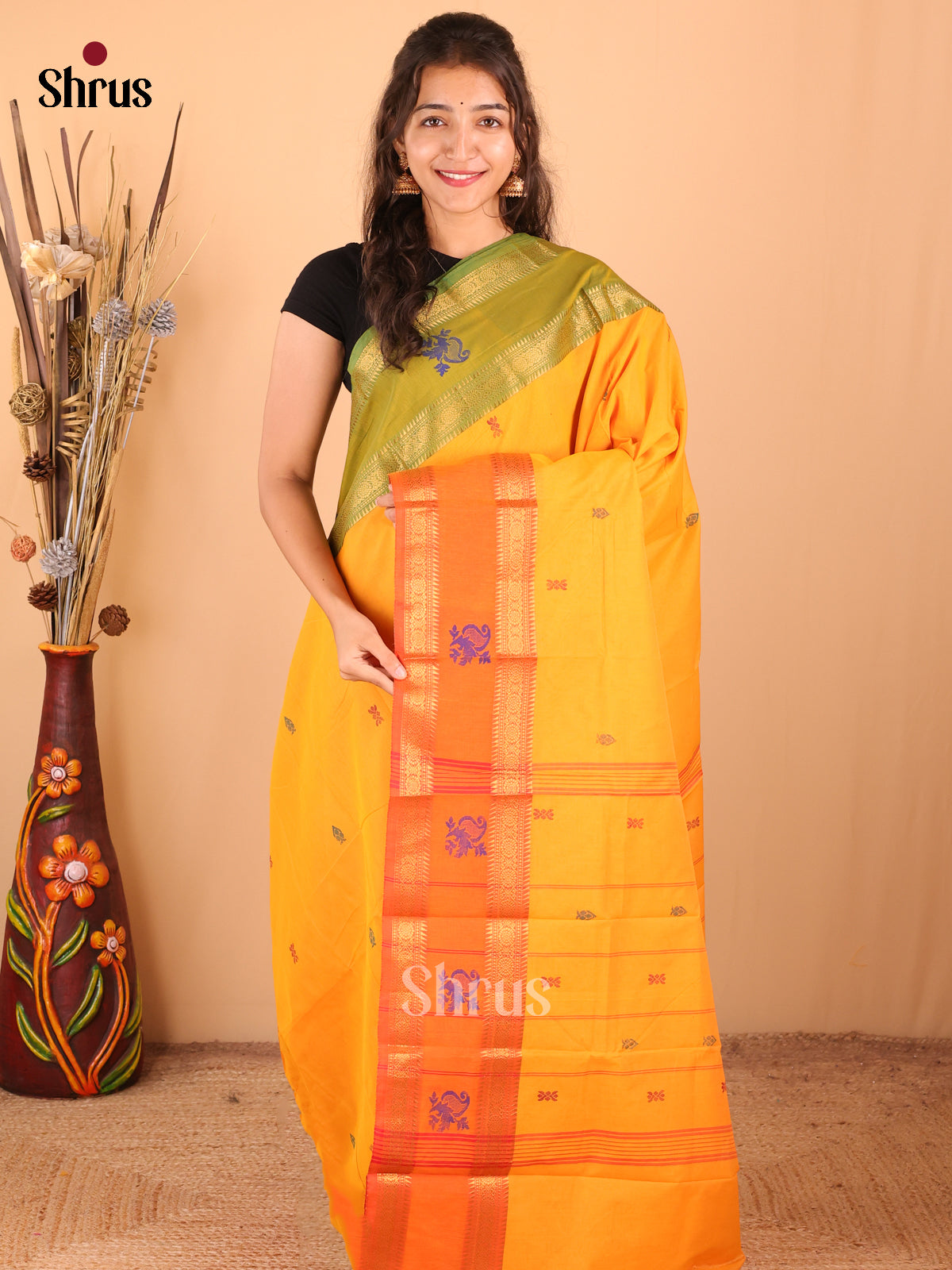 Orange with Green - DDS18157 - Chettinad Mix Cotton Saree