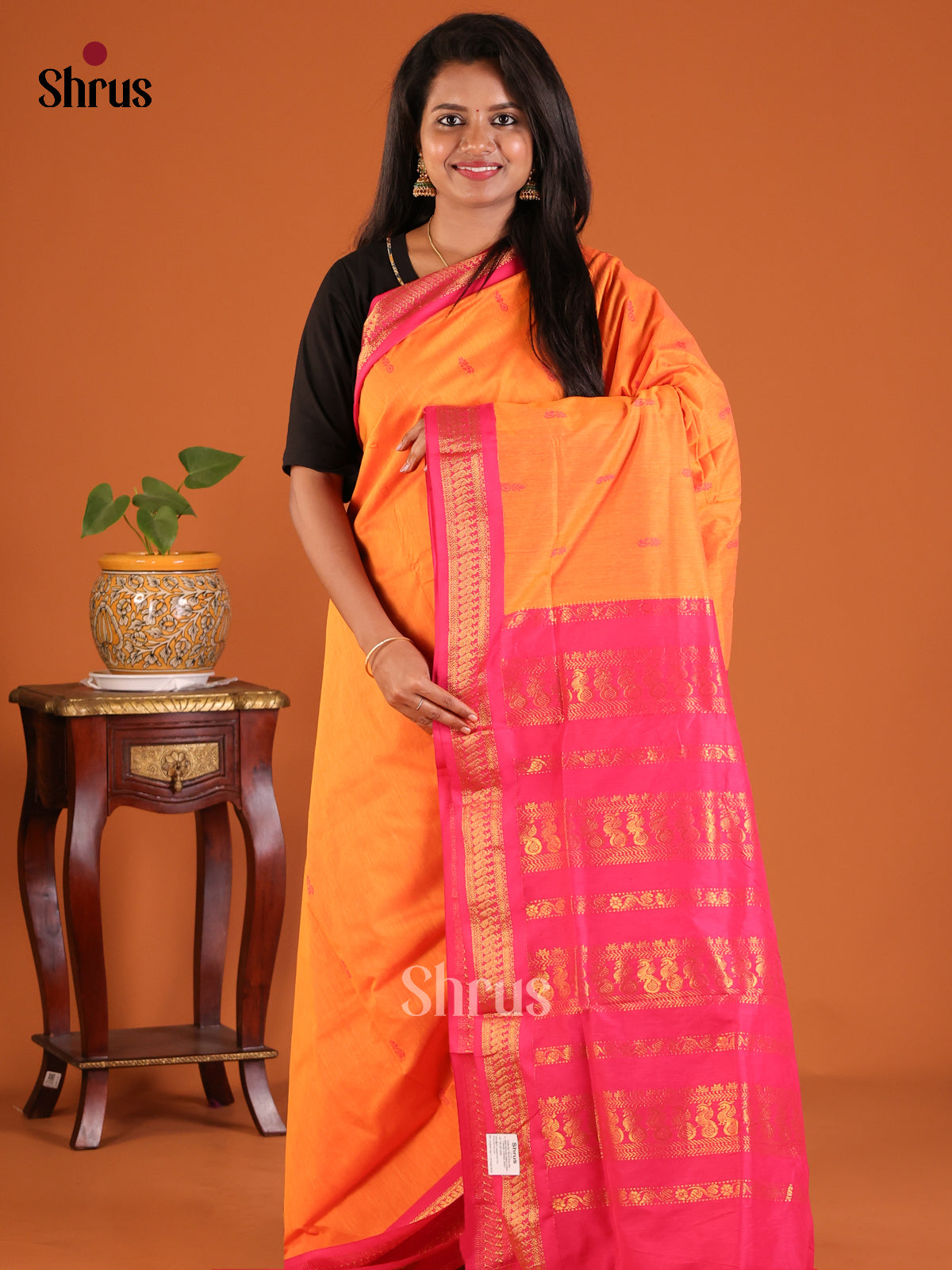 Orange Kalyani Cotton Saree with Zari Buttas & Pink Pallu