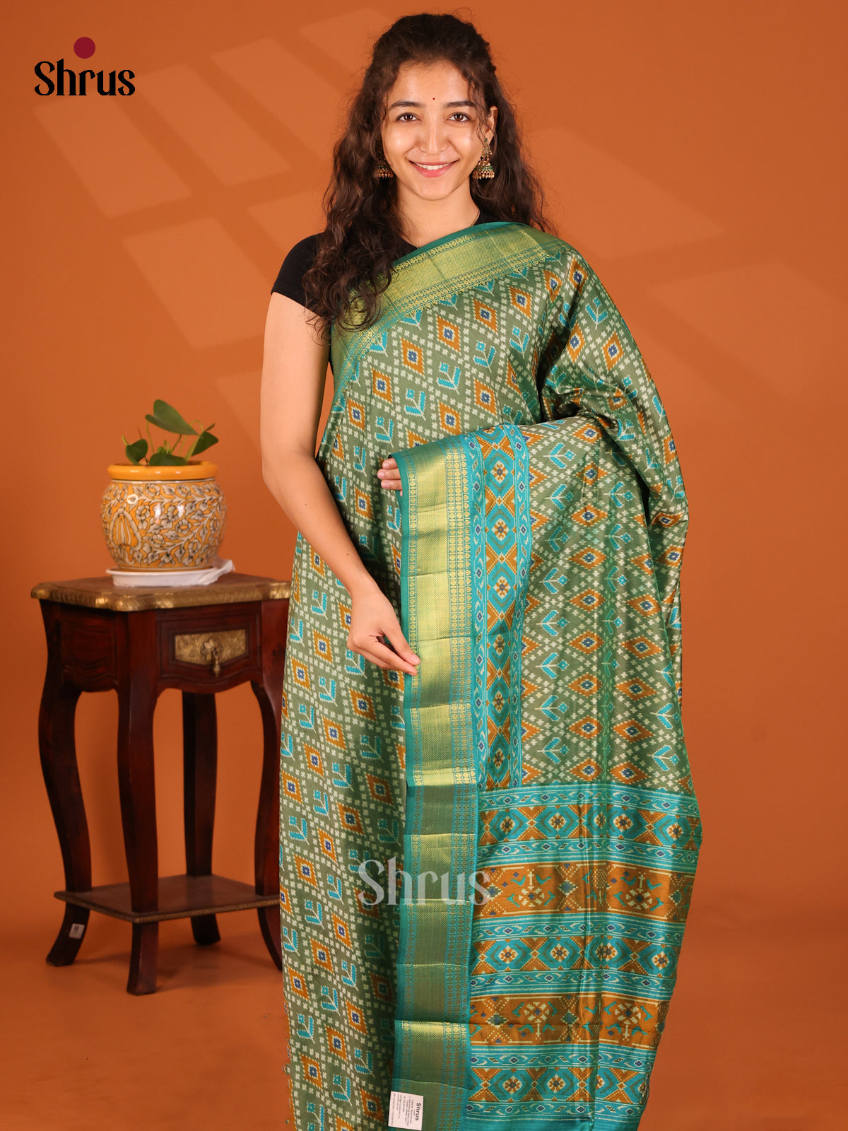 Green with Teal- Semi Patola Saree