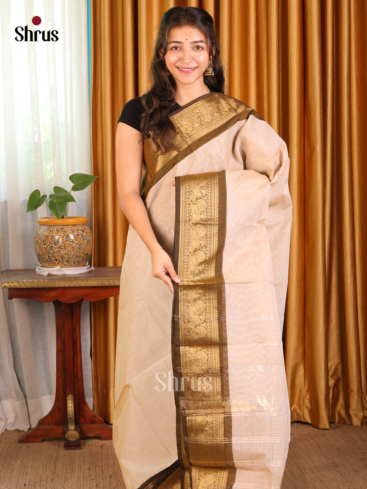 Charming Cream Chettinad Cotton with Mehandi Green Zari Border