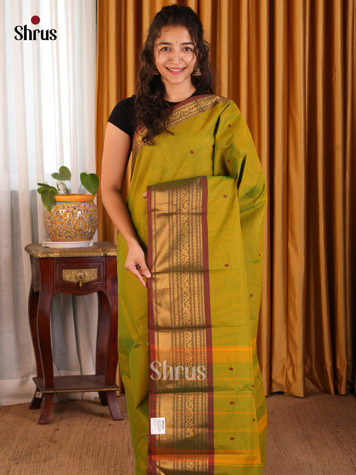 Elegant Brown Chettinad Cotton Saree with Zari Border & Thread Woven Buttas