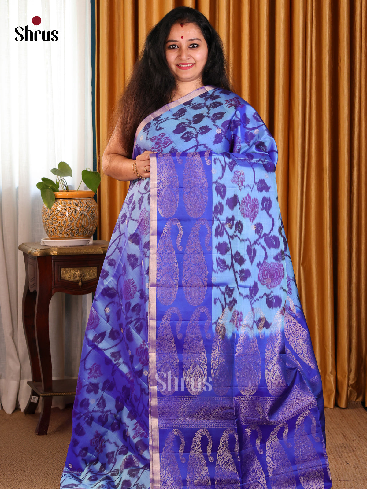 Discover understated elegance with this charming light blue soft silk saree, a true gem from our latest collection. The saree's graceful body is delicately adorned with intricate floral nestling motifs, adding a subtle touch of natural beauty. It features splendid contrast blue zari borders, meticulously woven with traditional paisley motifs that exude timeless artistry. The pallu is exceptionally rich, echoing the grandeur of the border with its exquisite detailing. Completing this alluring ensemble is a plain contrast blue blouse, designed to enhance the saree's sophisticated charm. Explore our soft silk sarees and Buy Soft Silk Sarees Latest Collection Online to embrace this captivating style.