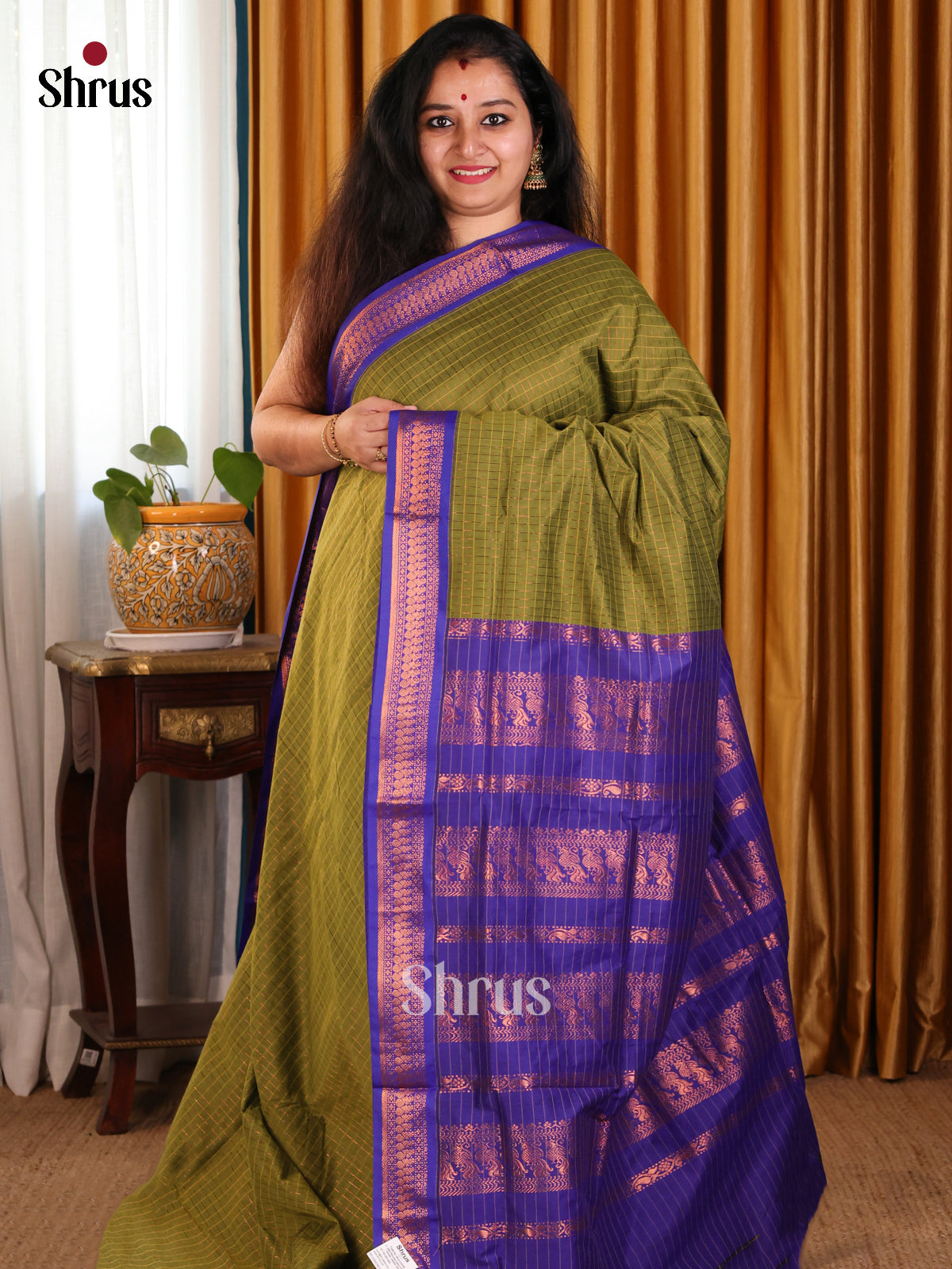 Serene Green Kalyani Cotton Saree with Blue Zari & Checks