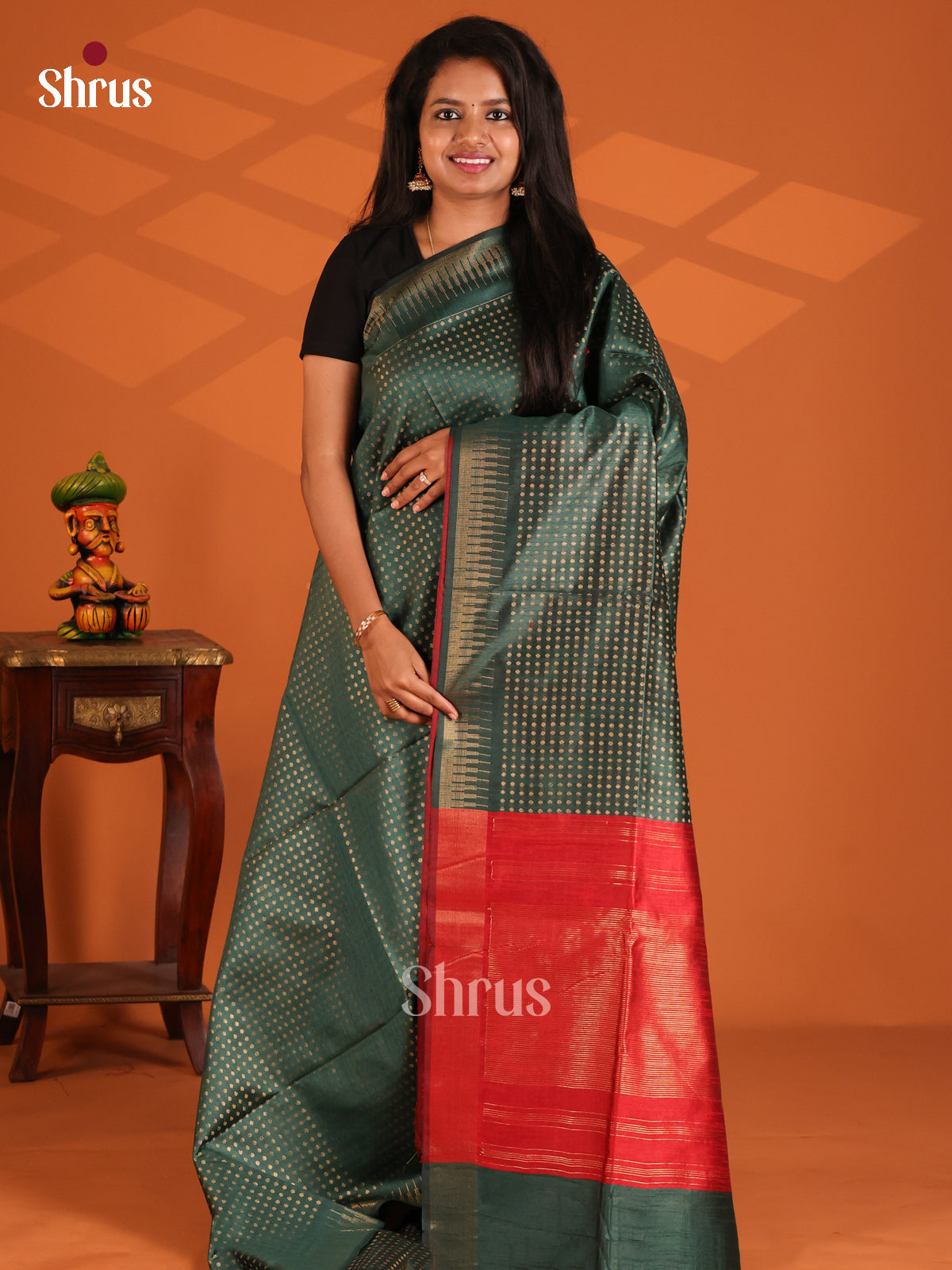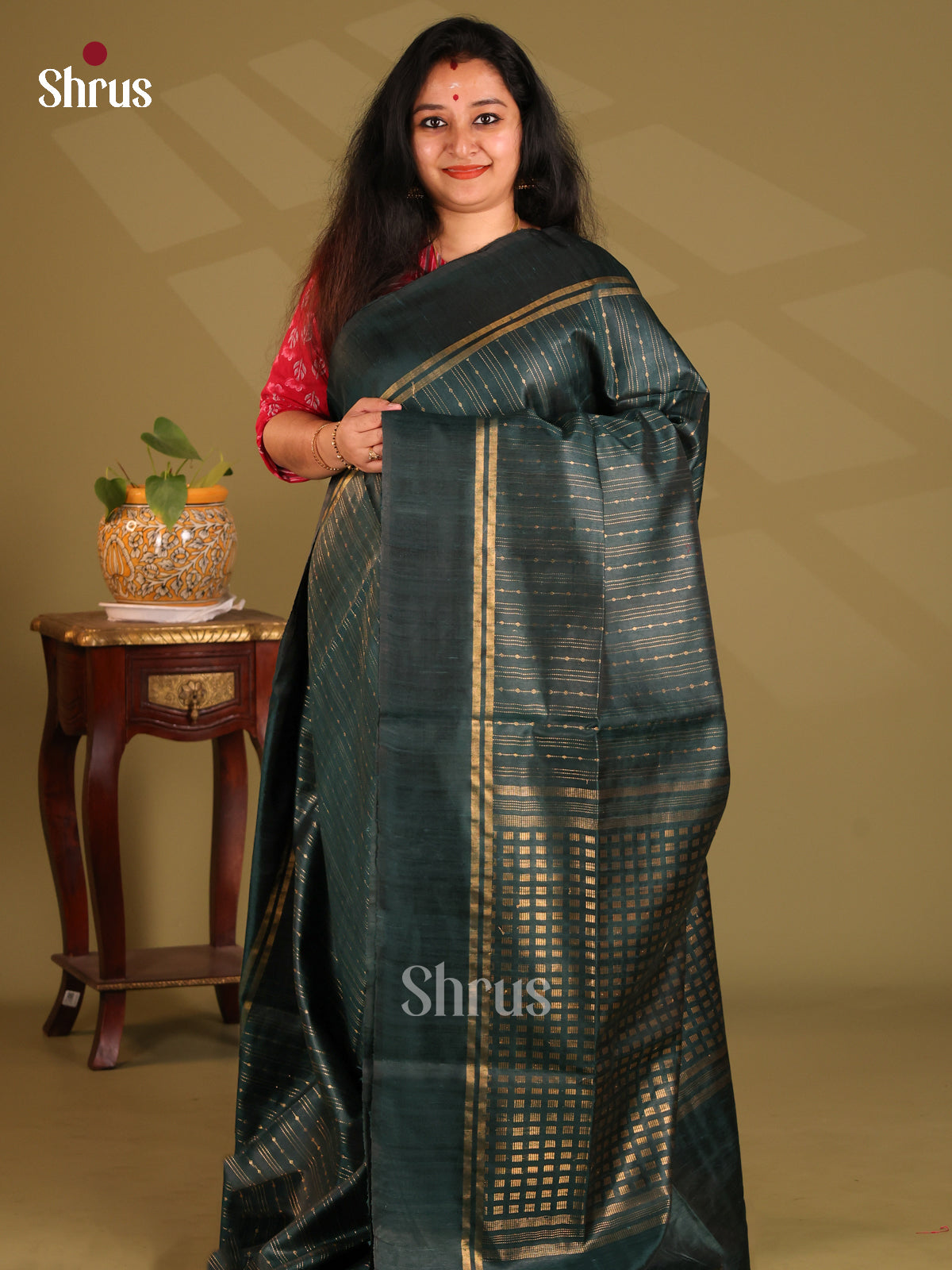 Serene Dark Green Raw Silk Saree with zari stripes , self butta brocade pallu