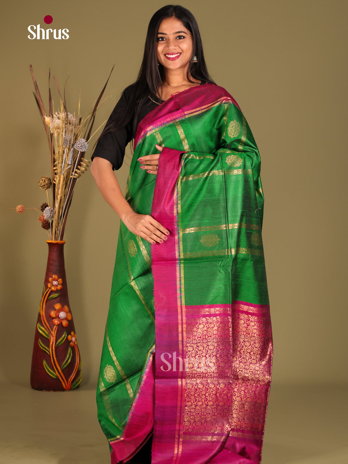 Serene Dark Green single tone Raw silk saree showcases zari stripes on the body, enhanced by a self border that adds a hint of charm. The splendid self zari-woven pallu and plain blouse lend a chic and stylish finish to this graceful ensemble
