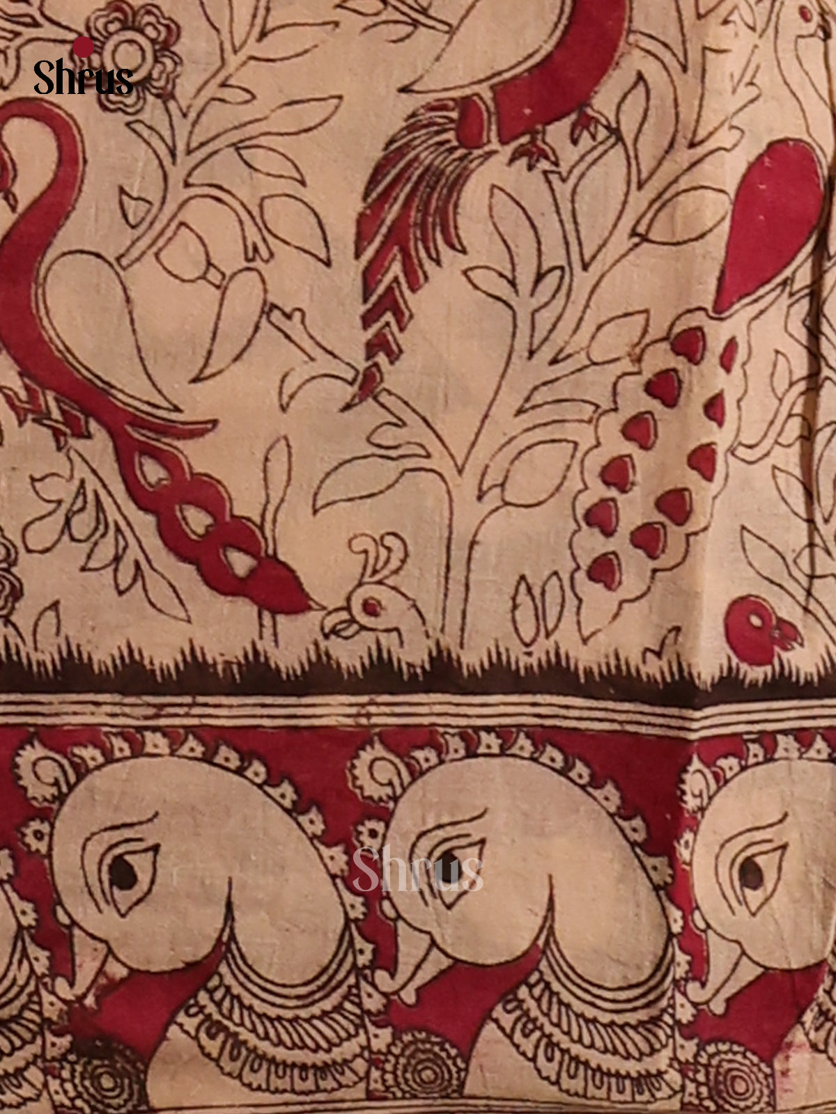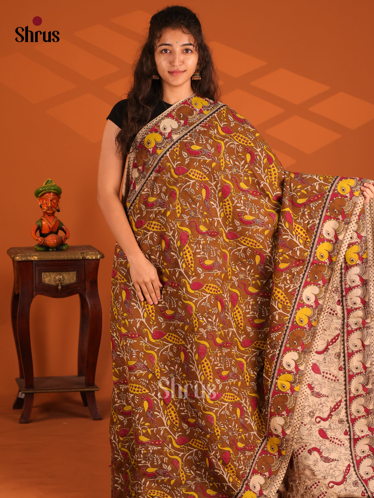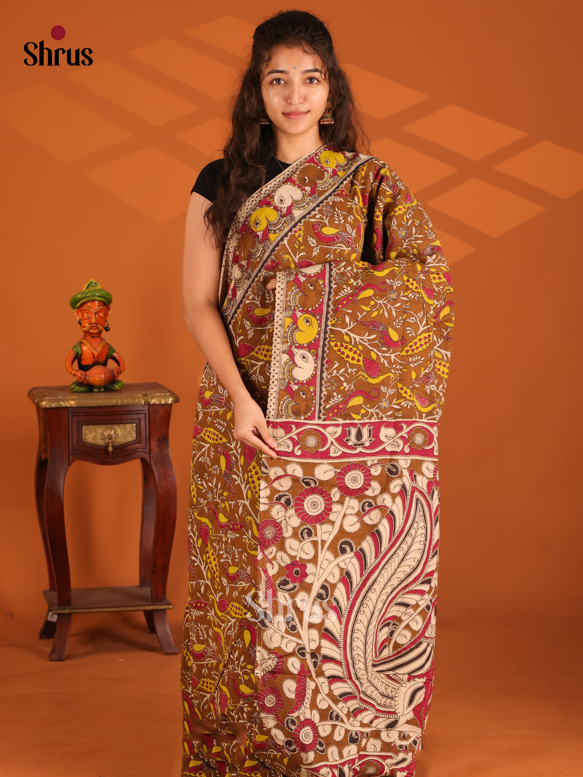 Brown & Red - Kalamkari cotton saree