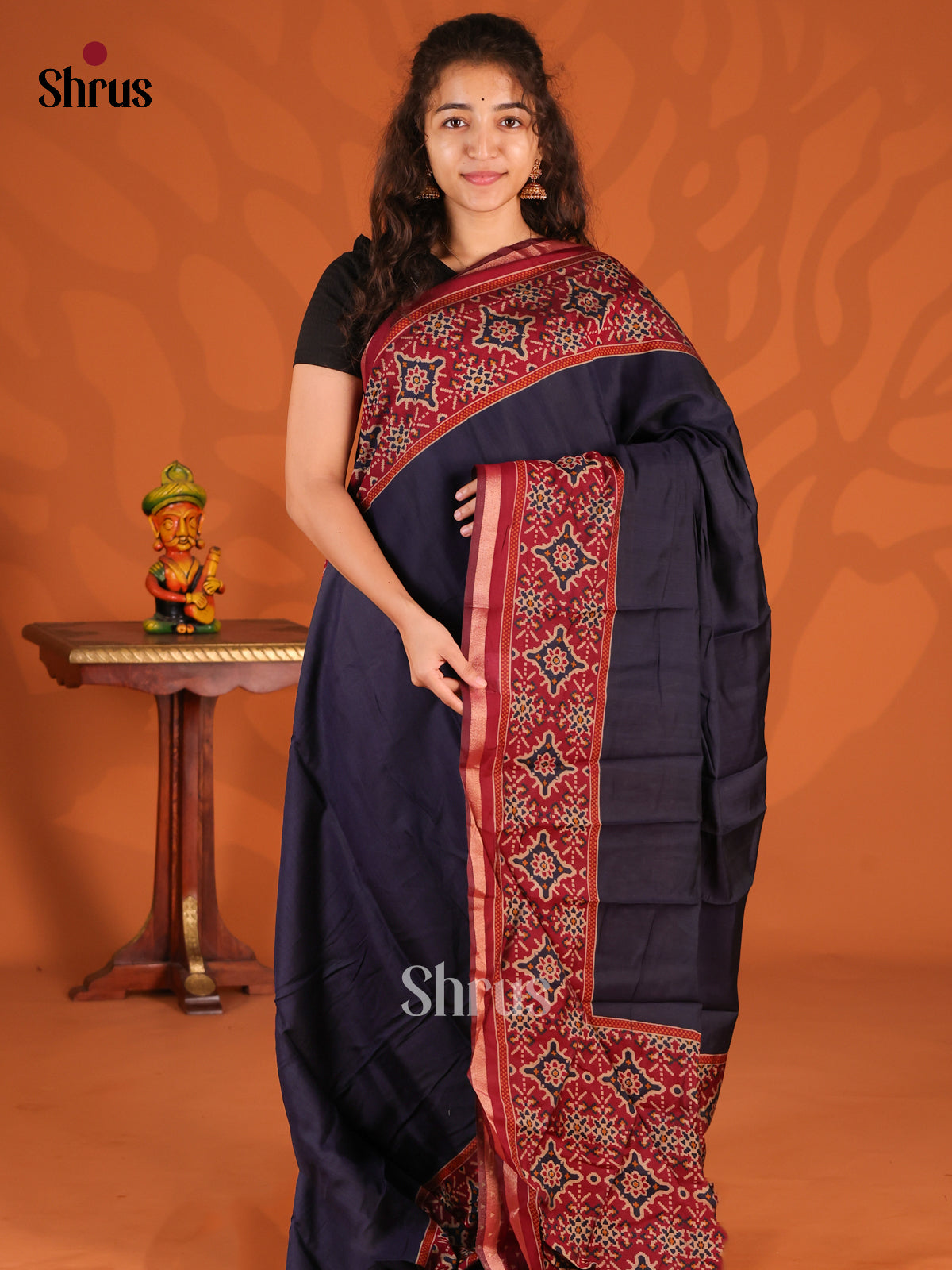 Charming Navy Blue Semi Crepe Saree showcases a graceful plain body, accentuated by a rich Maroon zari border and a stylish printed pallu. Paired with a matching Maroon blouse, this ensemble exudes understated elegance and sophistication