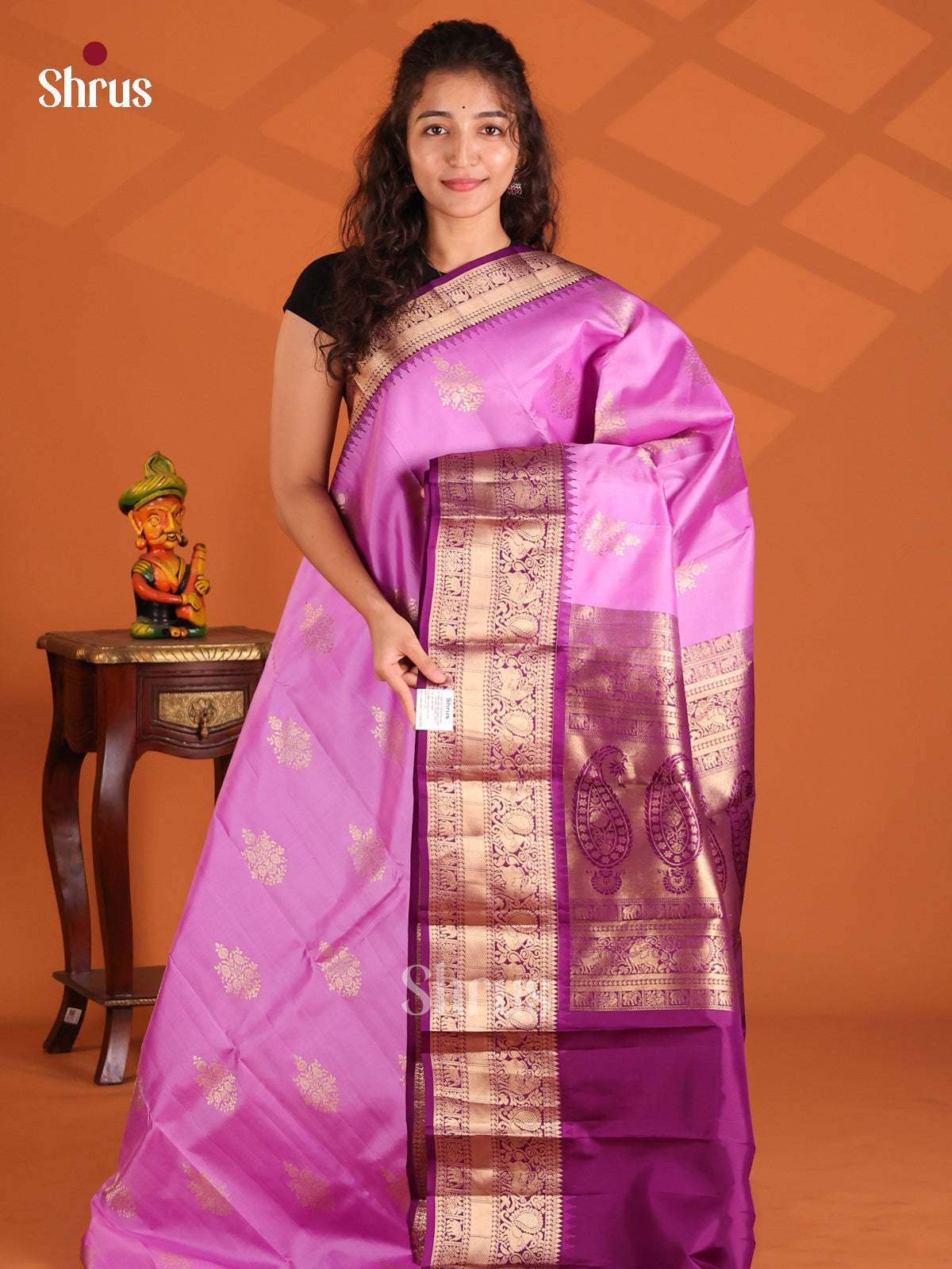 Lavender and Purple Kanchipuram silk (HR) Saree with splendid paisleys brocade pallu