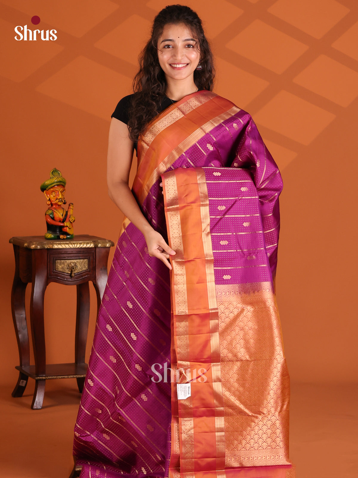 Exquisite Purple Kanchipuram silk (HR) Saree with rettaipet Orange border