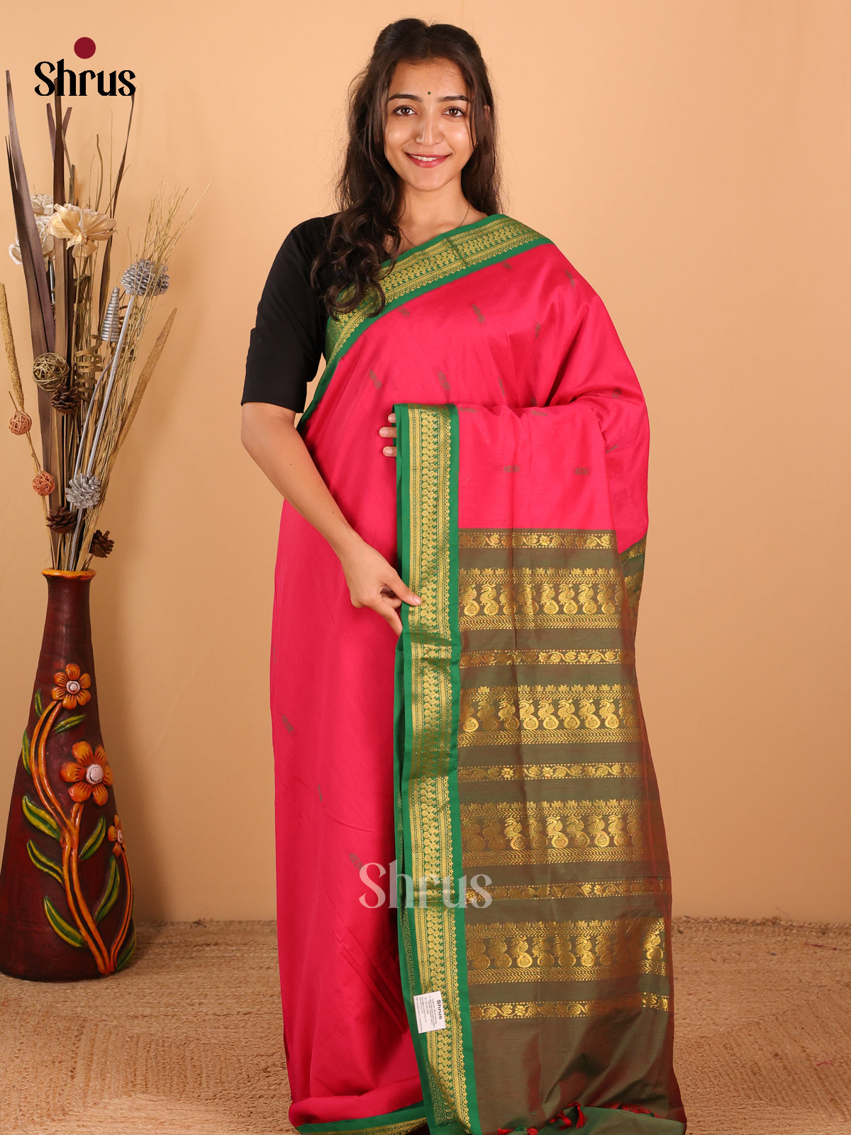 Rani Pink Kalyani Cotton Saree With Buttas And Light Brown Pallu With Golden Zari