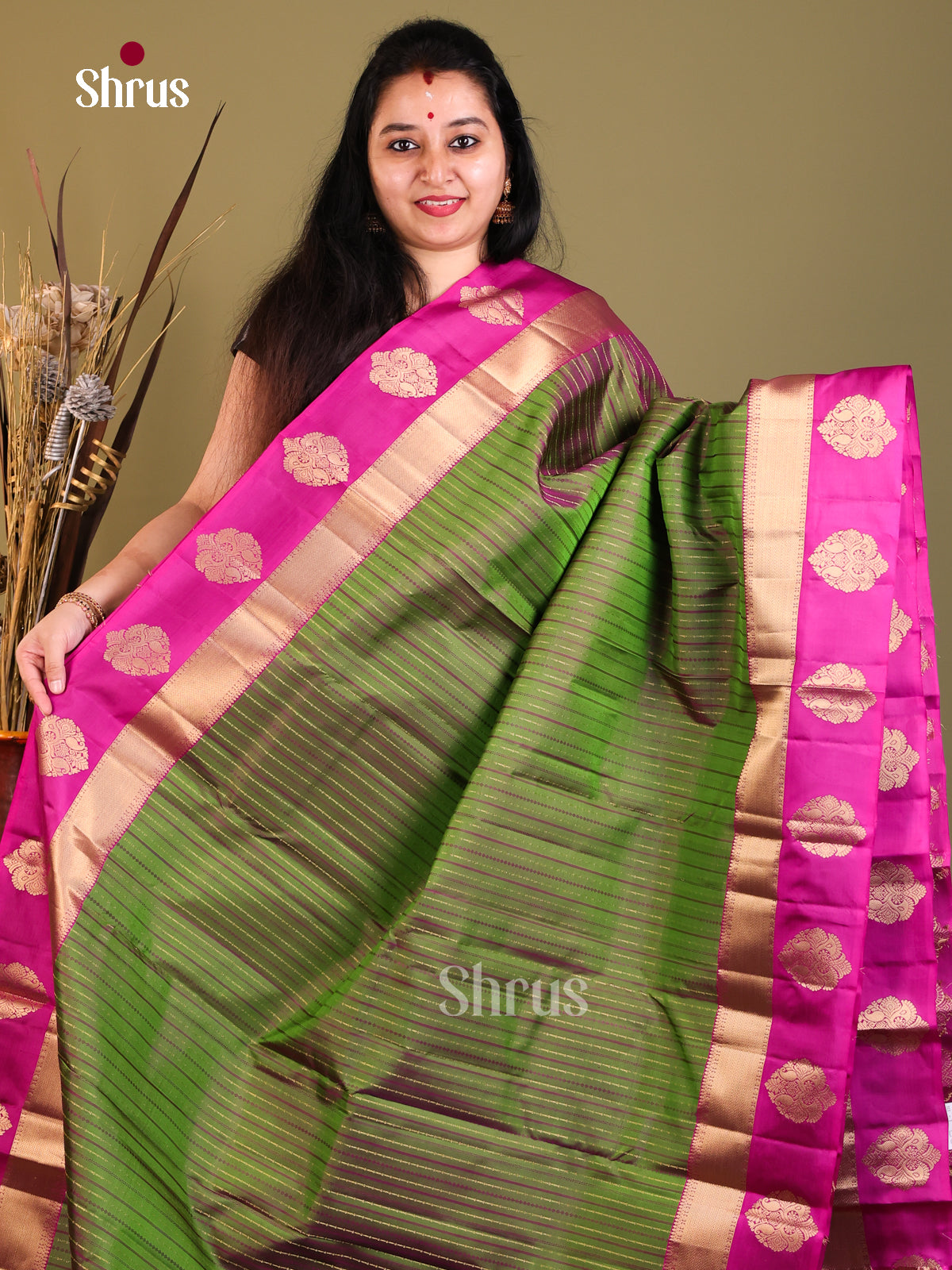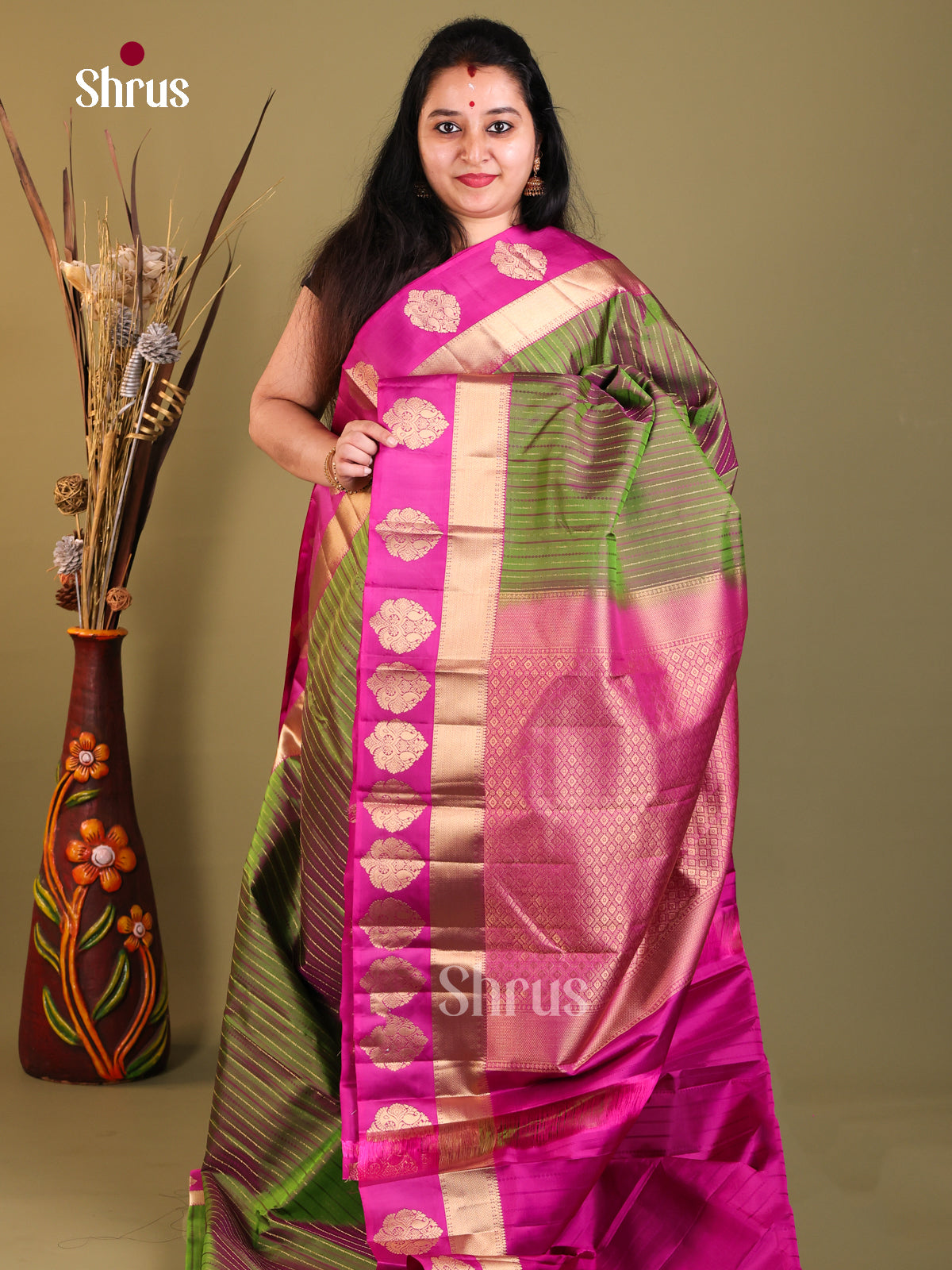 Violet and Pastel Green Pure Kanchipuram silk Saree With Thread Woven Checks