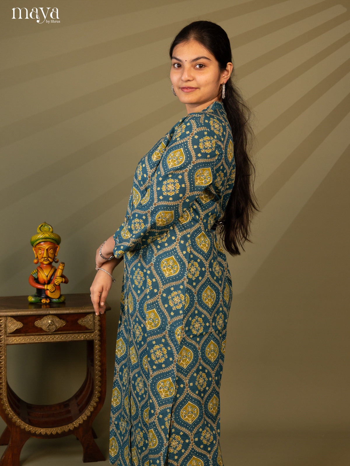Blue Cotton 2Pc Salwar Suit with Ajrakh print - Top & Bottom