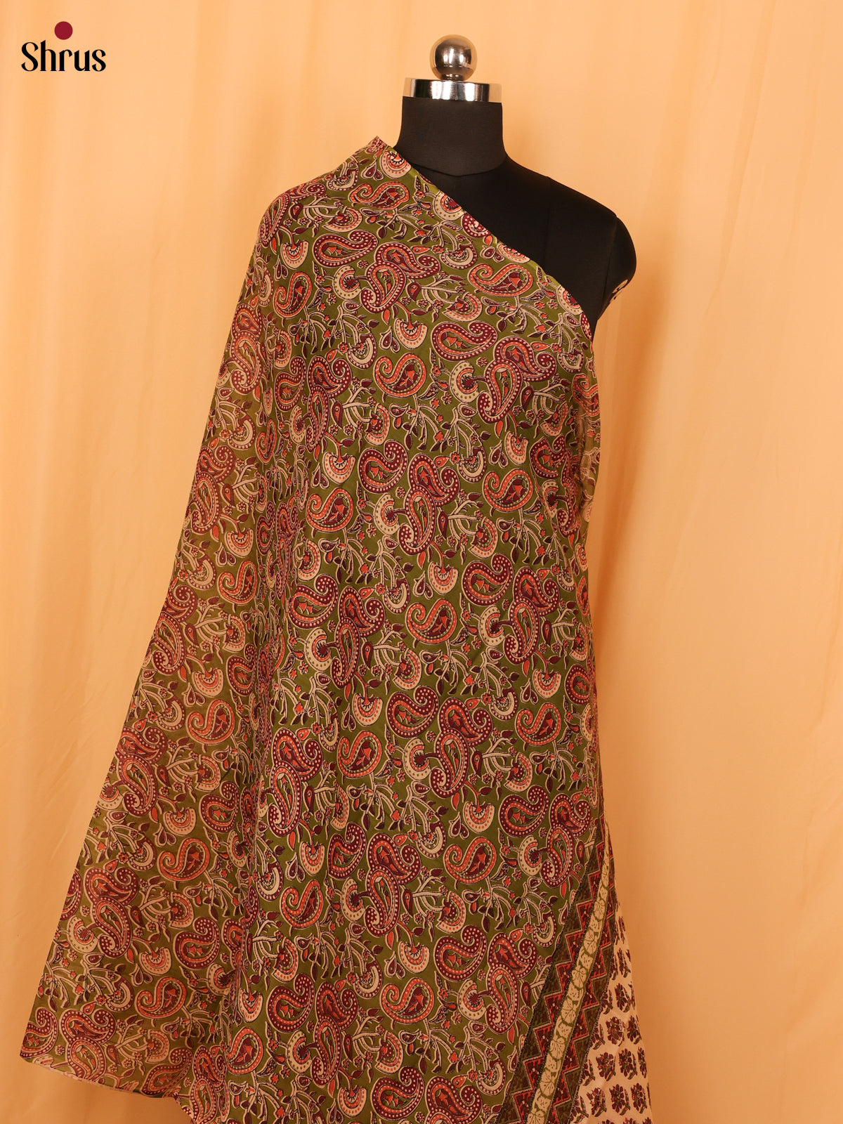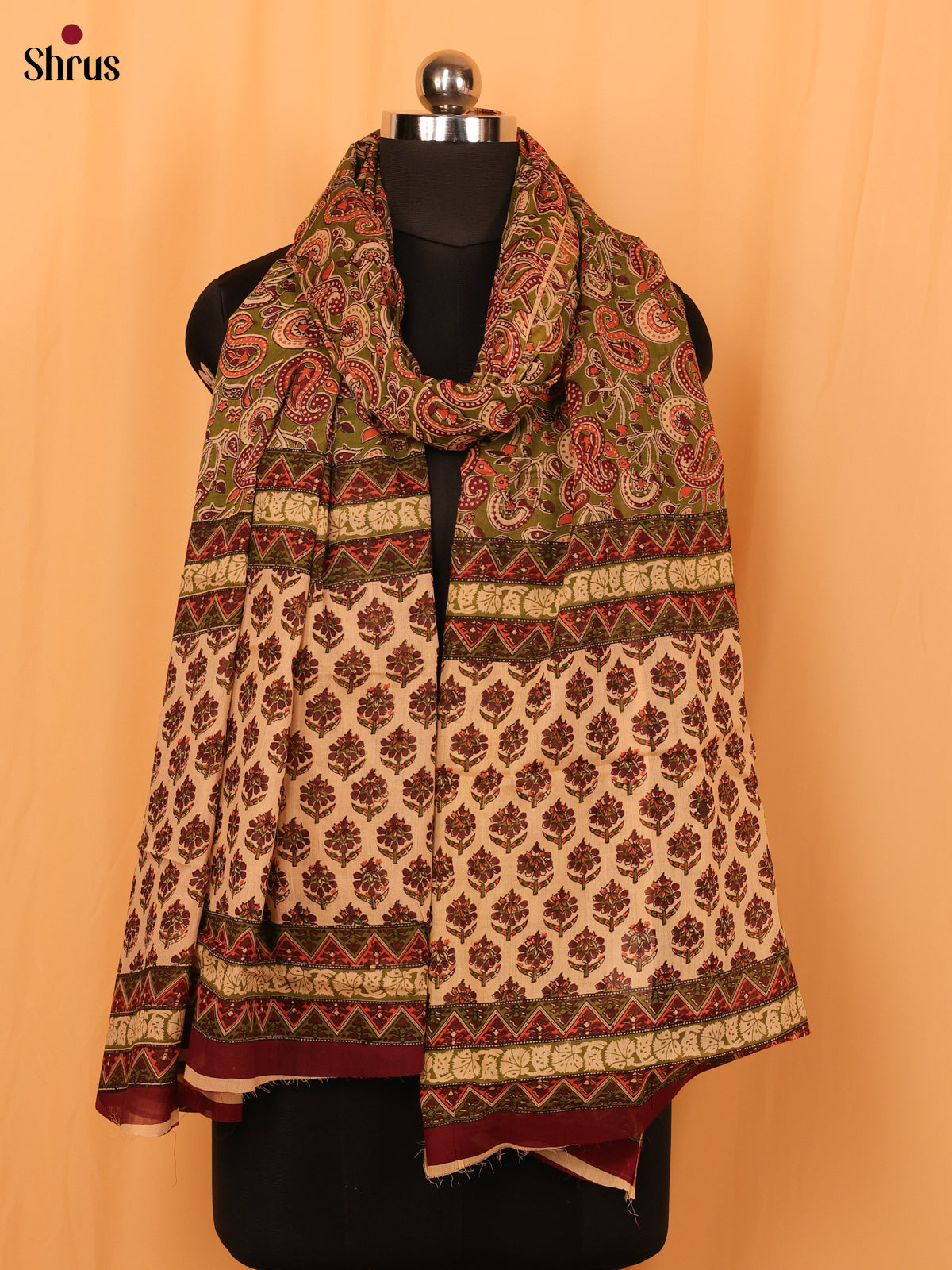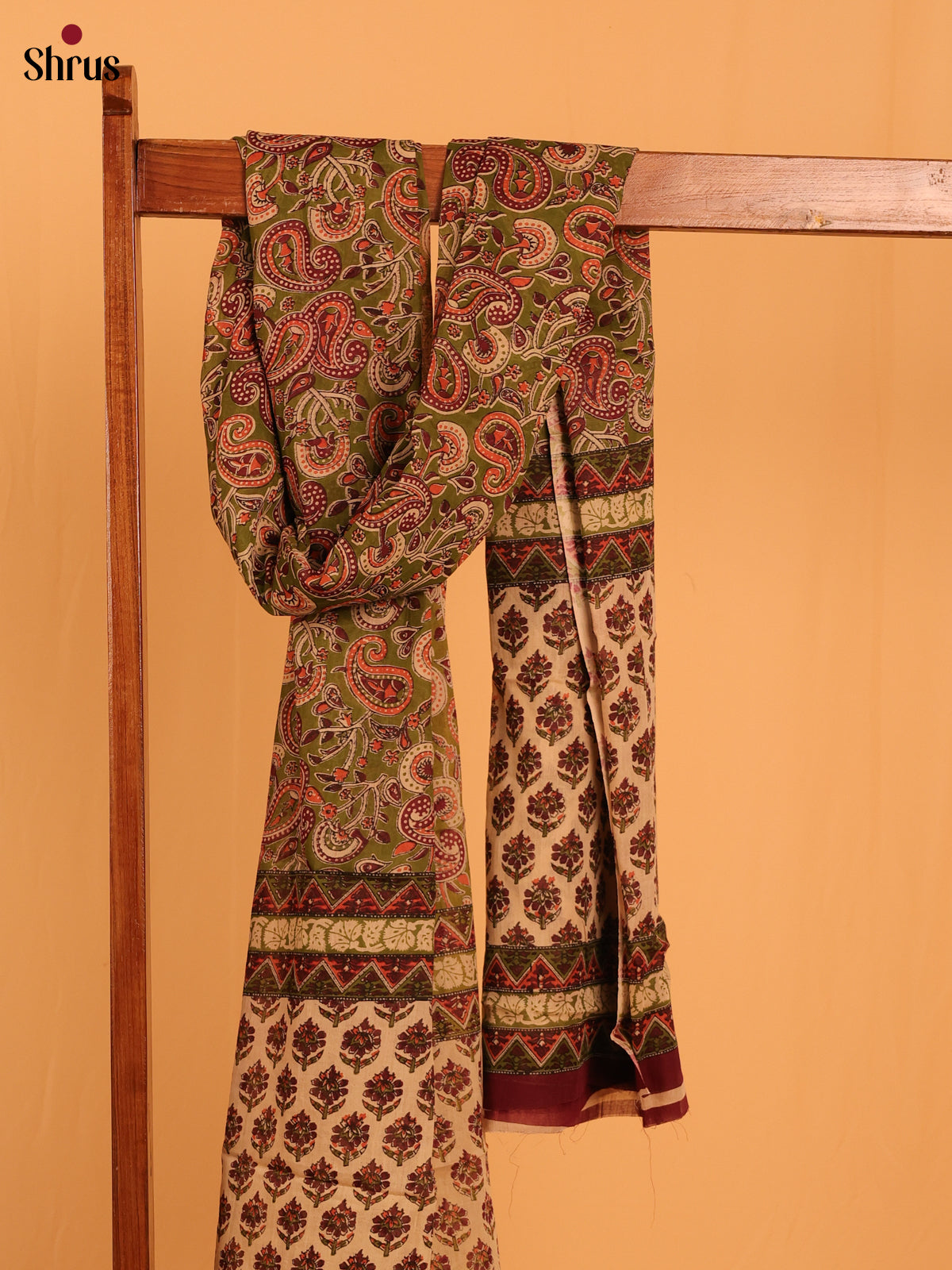 Green Kalamkari Cotton Dupatta - MCL28133