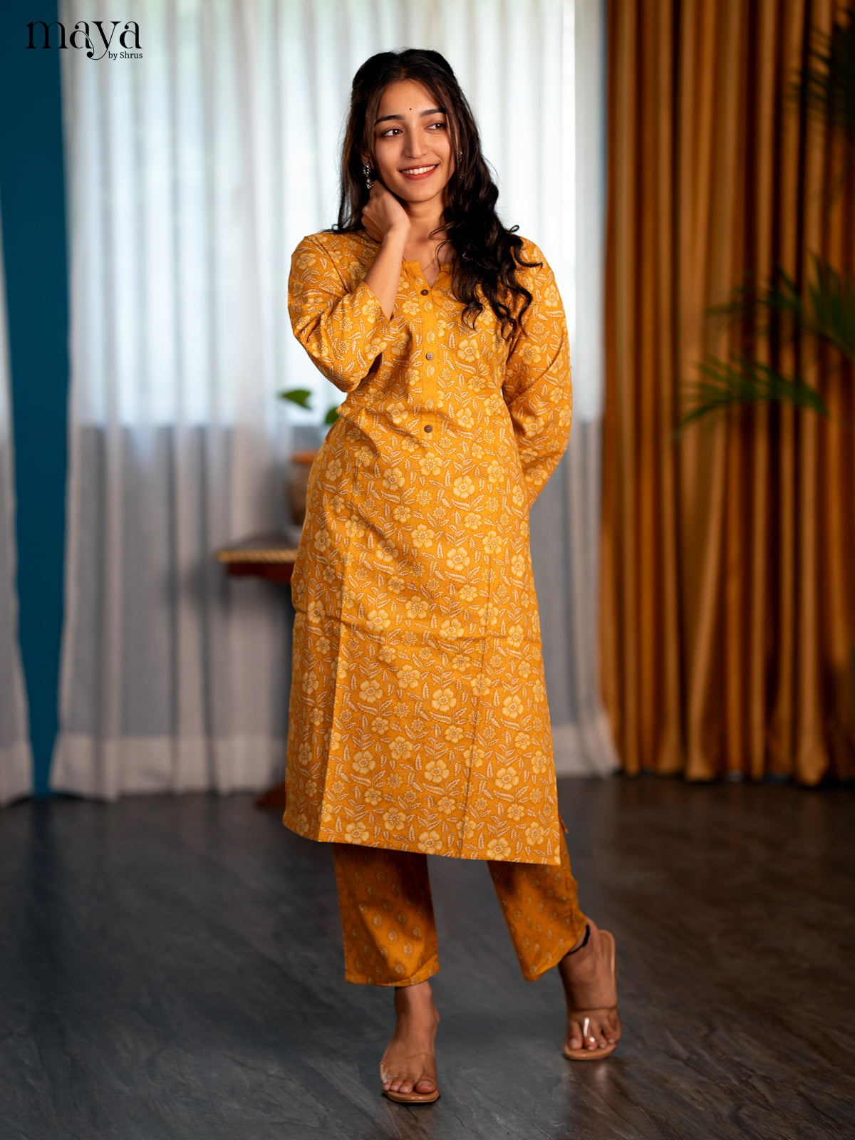 Mustrad Yellow Cotton 2pc Floral Print Salwar Suit - Top & Bottom