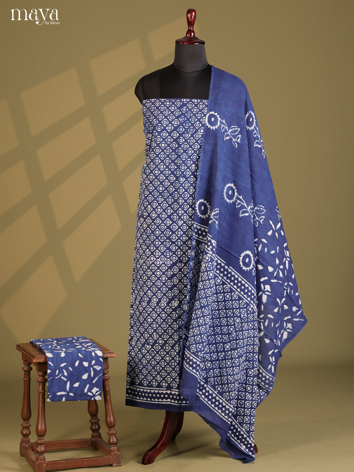 Pretty Blue Cotton salwar adds a touch of beauty to any ensemble with its lovely floral print and complementary white bottom and dupatta. Made with high-quality cotton, this unstitched suit is perfect for any fashion-forward individual.