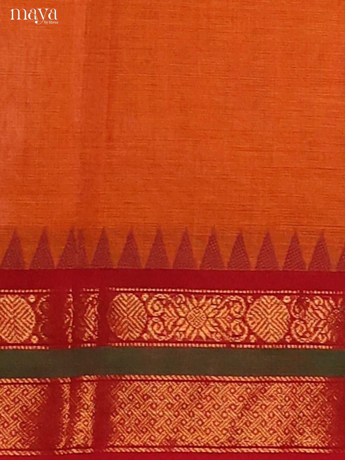 Orange Chettinad Cotton Dupatta with Maroon zari border