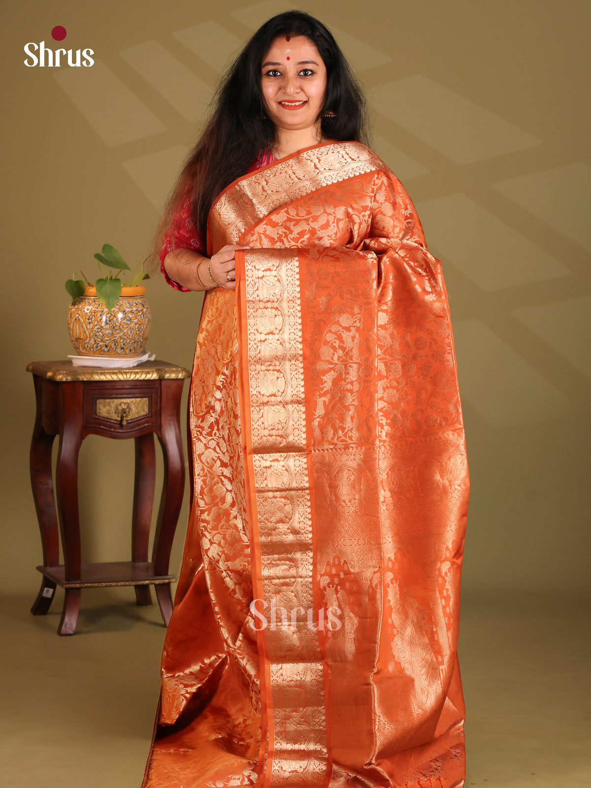 Brick Orange Monochrome Soft Silk Saree with zari woven vanashrigaram floral brocade