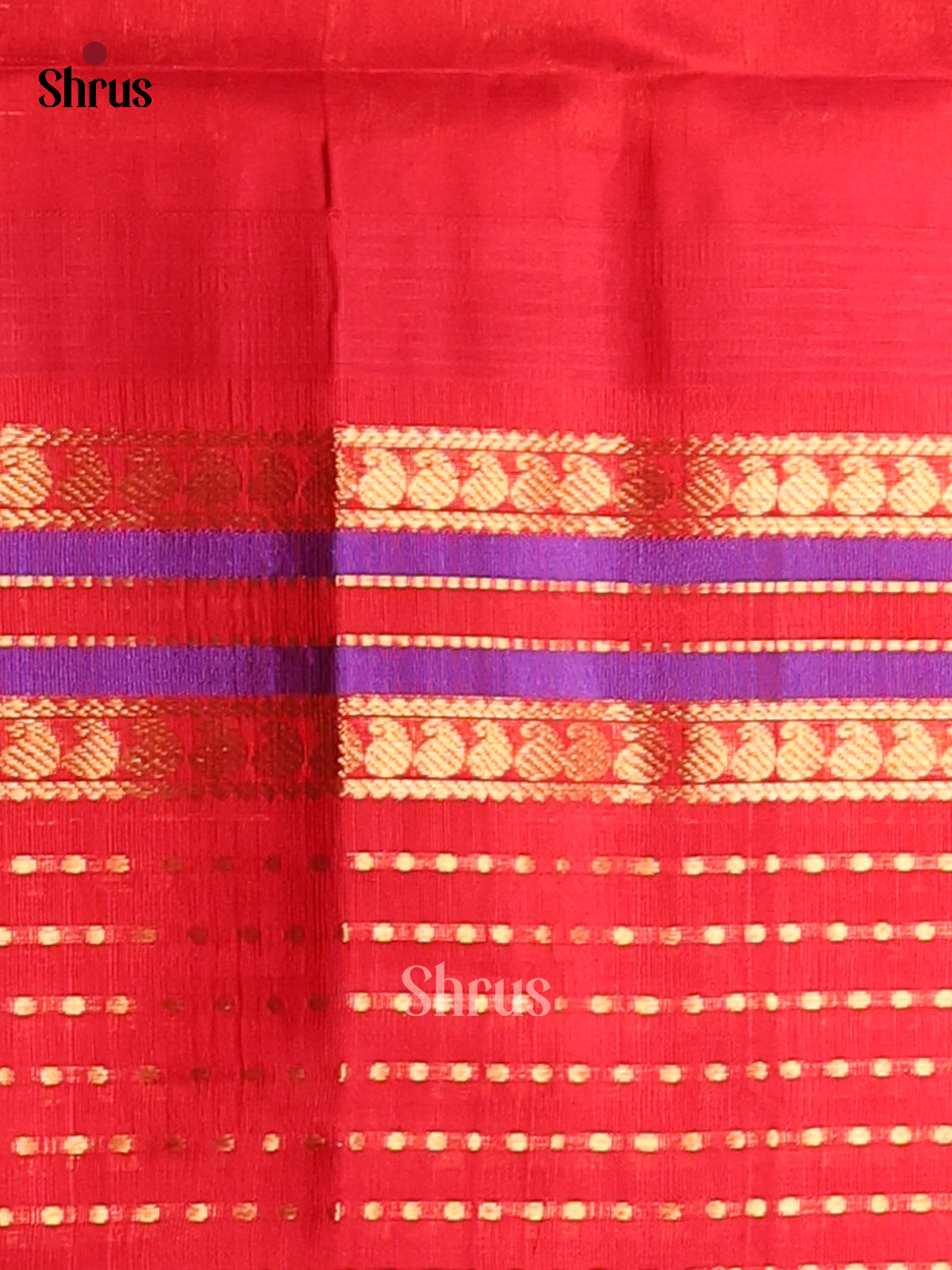 The contrast Red pallu is a stunning showcase of intricate zari brocade, adding a touch of opulence. Crafted from a comfortable blend of pure silk and breathable cotton, this Cotton Silk saree offers a graceful drape and a pleasant feel. The simple blouse with a zari border completes this refined ensemble. Perfect for various occasions, this saree embodies timeless elegance with a touch of vibrant contrast.