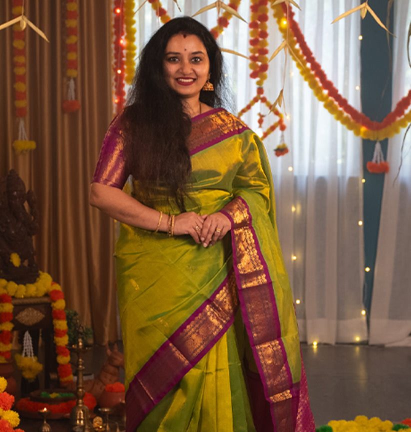 Just like the raagam, our Keerthanai sarees are intricately woven with the same strings of music - traditional, calming, and undeniably elegant. Explore our collection of Silk Cotton sarees featuring Kanchi borders, Vaira Oosi, Podi Katam, and borderless designs. Each piece is a nostalgic ode to the days when your Patti wore these timeless sarees at family functions, bringing those lovely memories back to life.
