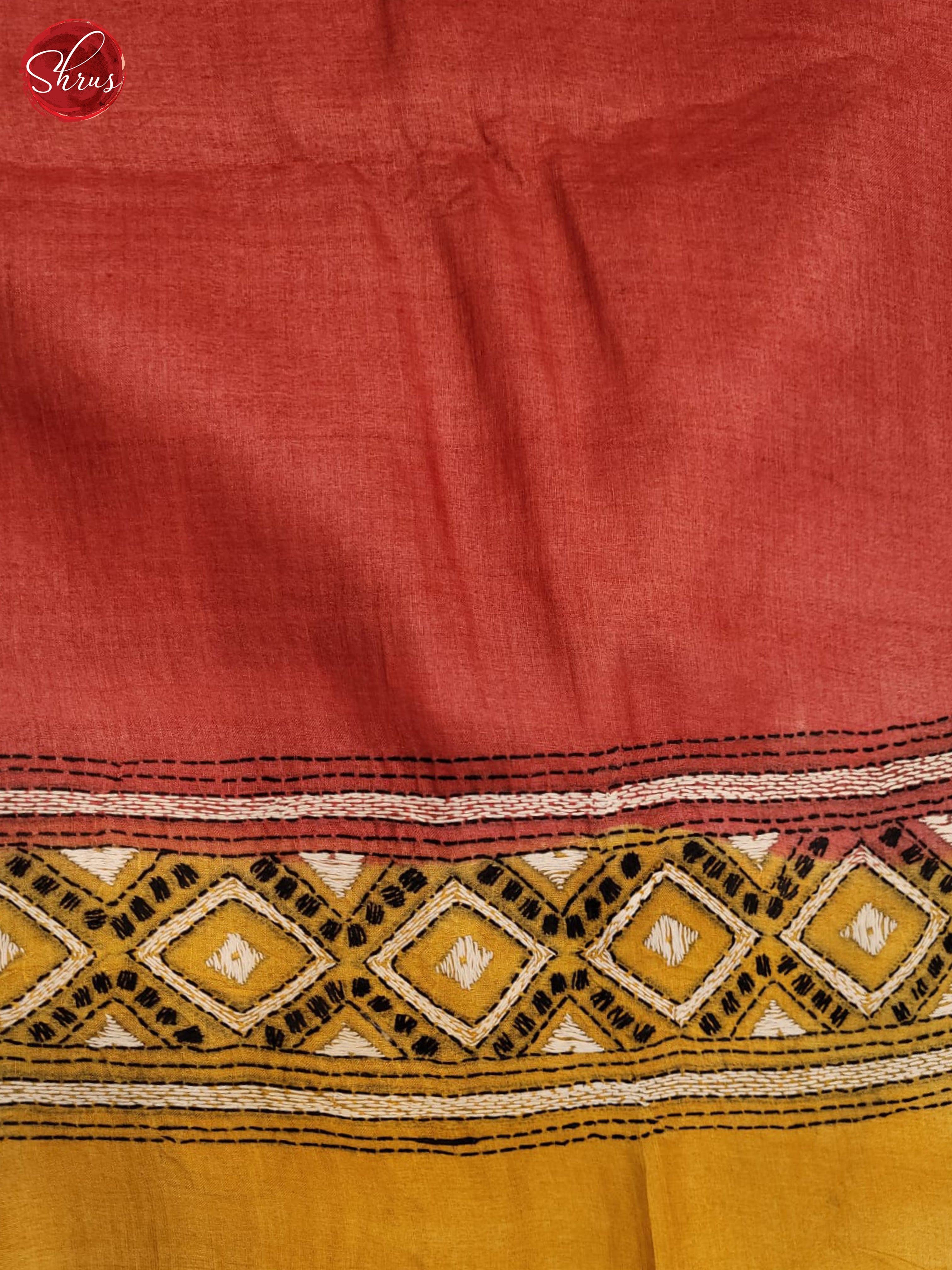 Pretty hand embroidery Kantha stitch in this multicolor Tussar Saree with kantha stitch lends a beautiful complement Comes with pretty embroidered pallu adds elegance . Comes with plain brick blouse with border gives a perfect fit