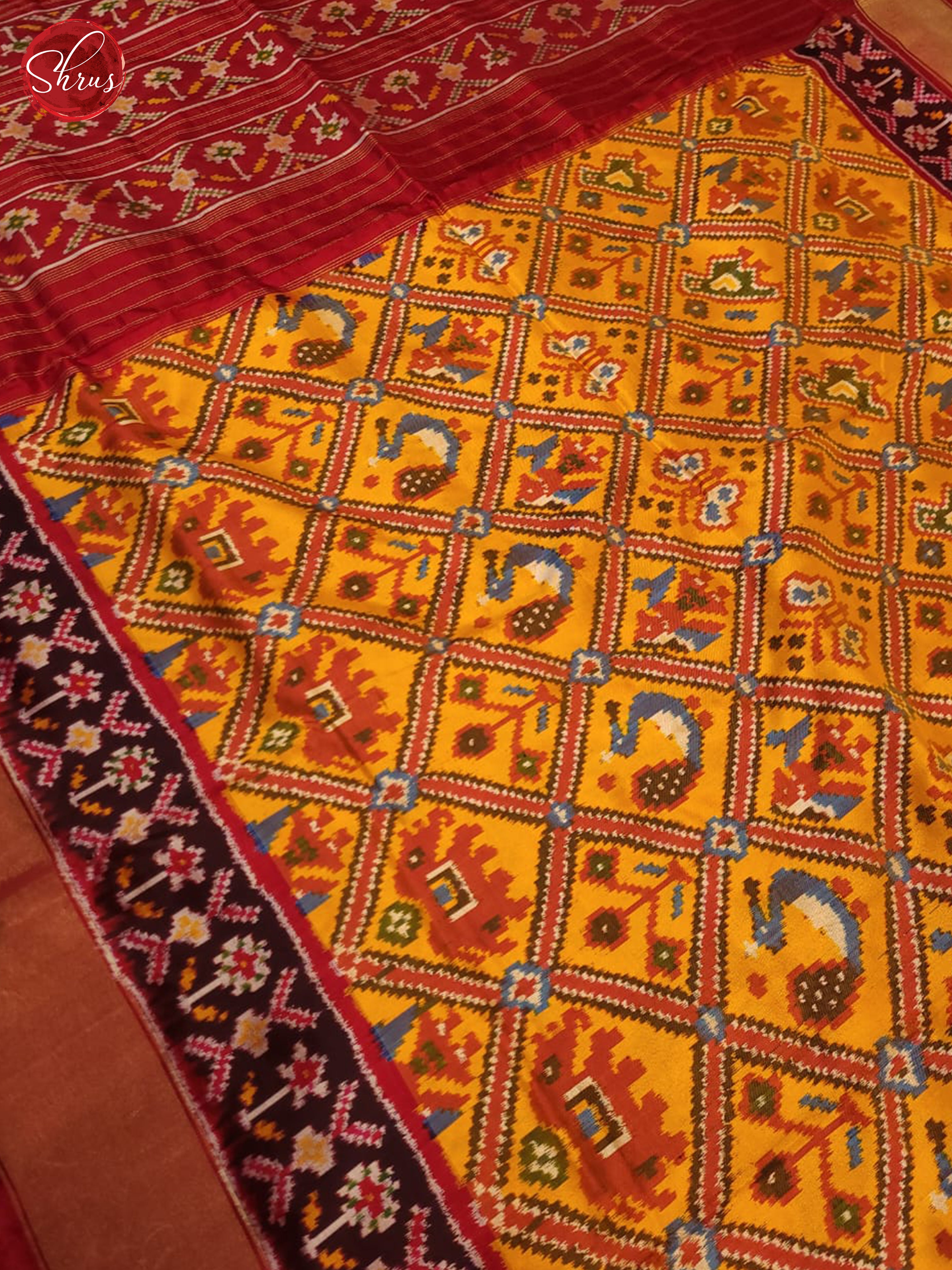 Mustard & Red - Ikkat Silk Saree