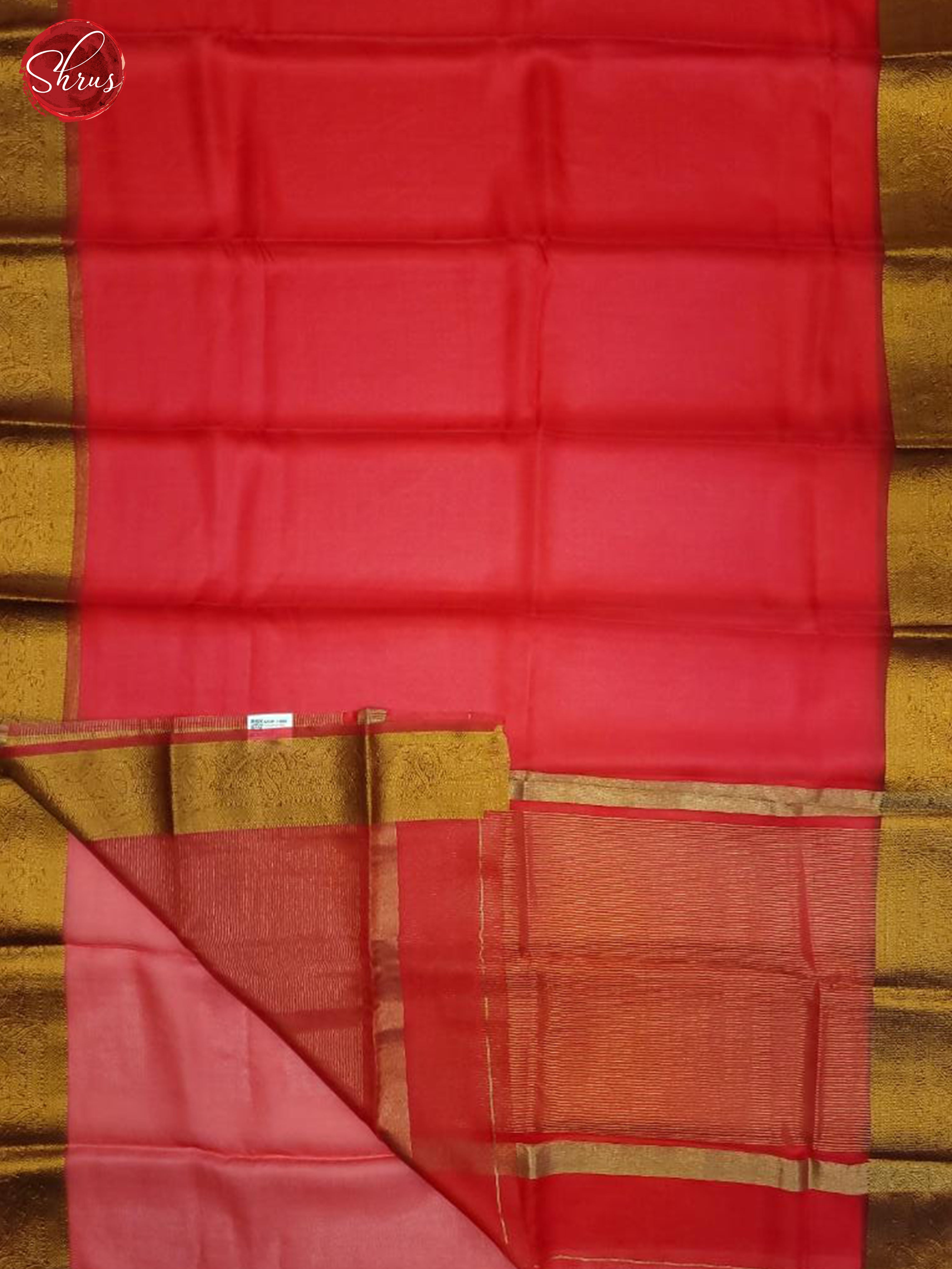 Charming Pink Semi Organza Silk saree with plain body . The self zari border & Pallu accentuate the classy weave. The plain self blouse with zari border compliments.