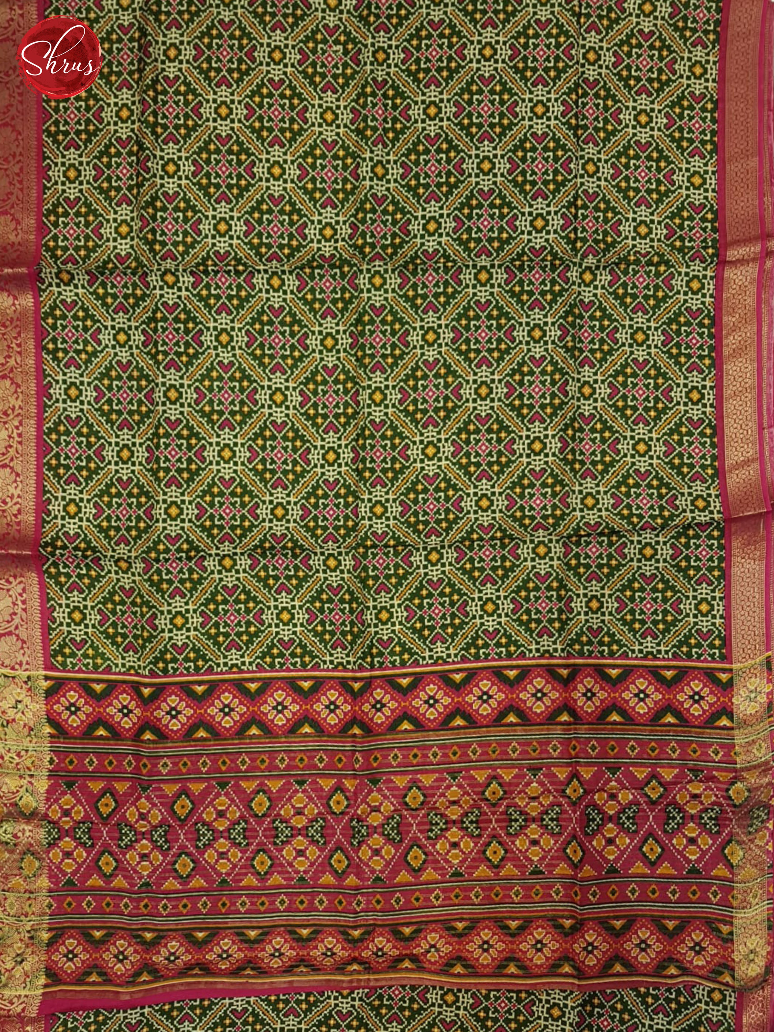 Pretty Green Semi Crepe Saree enchants with floral printed body & bounded with contrast Pink zari border & pallu compliments beautifully Comes with printed Pink blouse with zari border gives a perfect finish