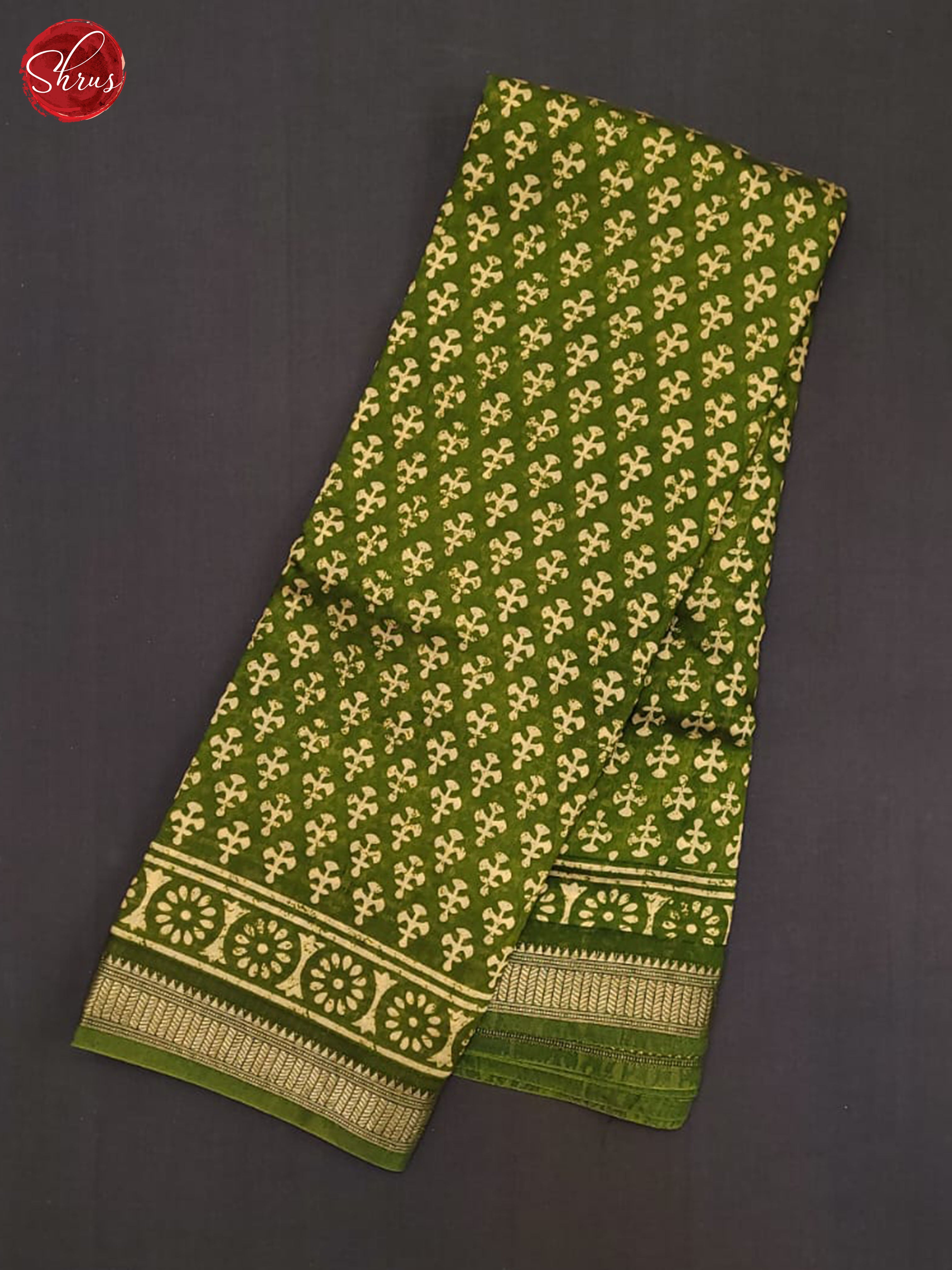 Pretty Green Semi Chanderi Saree with block floral printed body The self zari border ,printed pallu & paired with printed self blouse gives a perfect fit