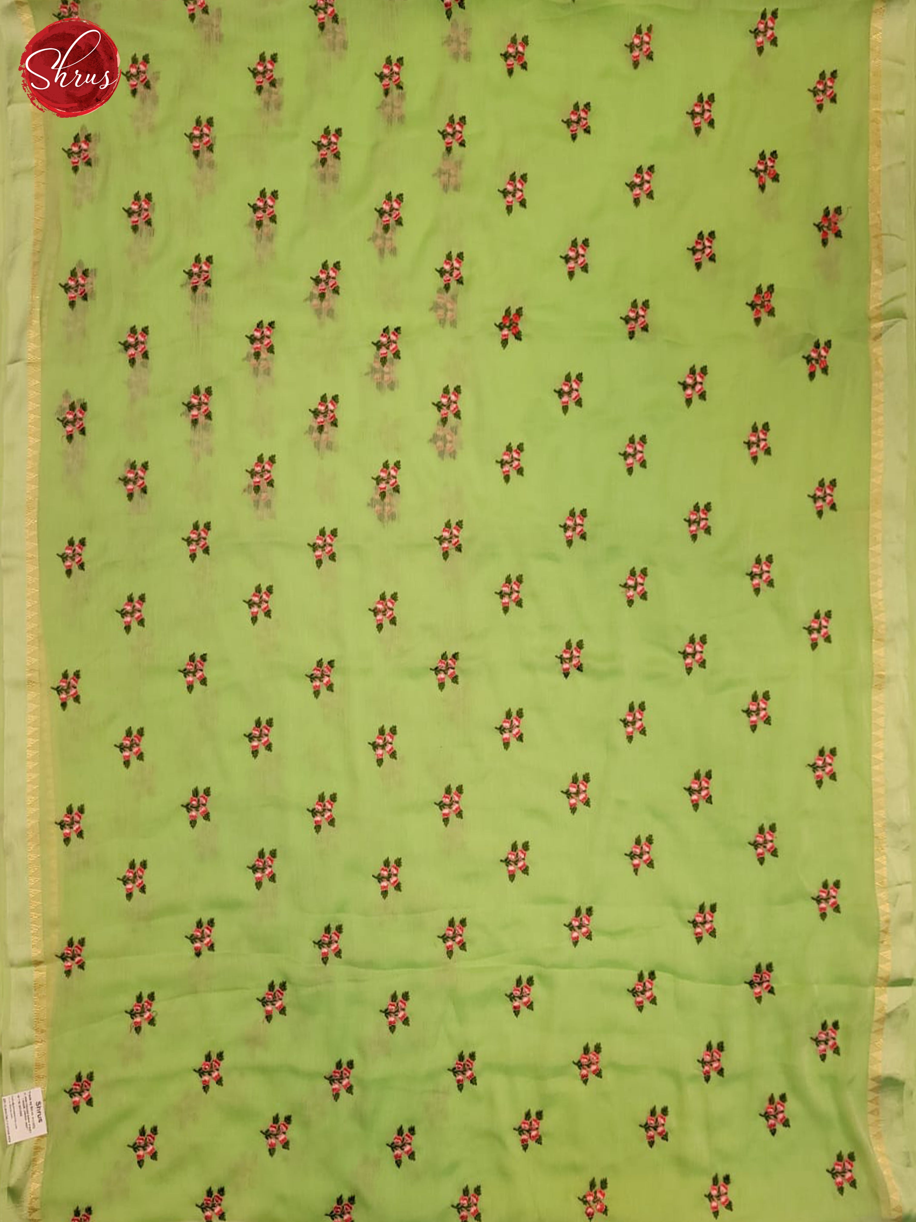 beautiful Green Semi Chiffon Saree, enchants with floral embroidery on the body & Pallu . The self thin zari Border adds to the allure The self Plain blouse with Zari Border gives a chic twist