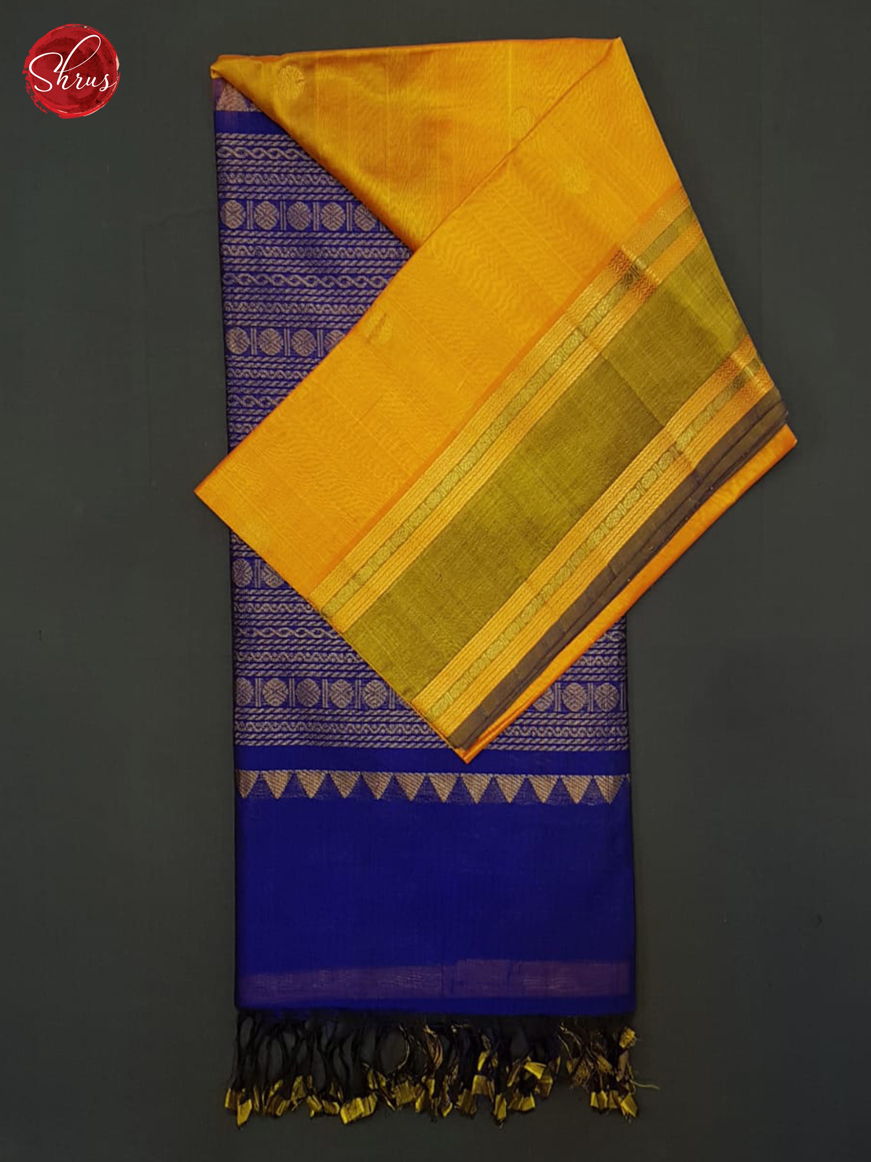 Pretty Orange Silk Cotton Saree enchants with plain Body & bounded by a Zari Border . The splendid Contrast blue zari woven brocade Pallu And plain Blouse with zari Border gives a chic twist