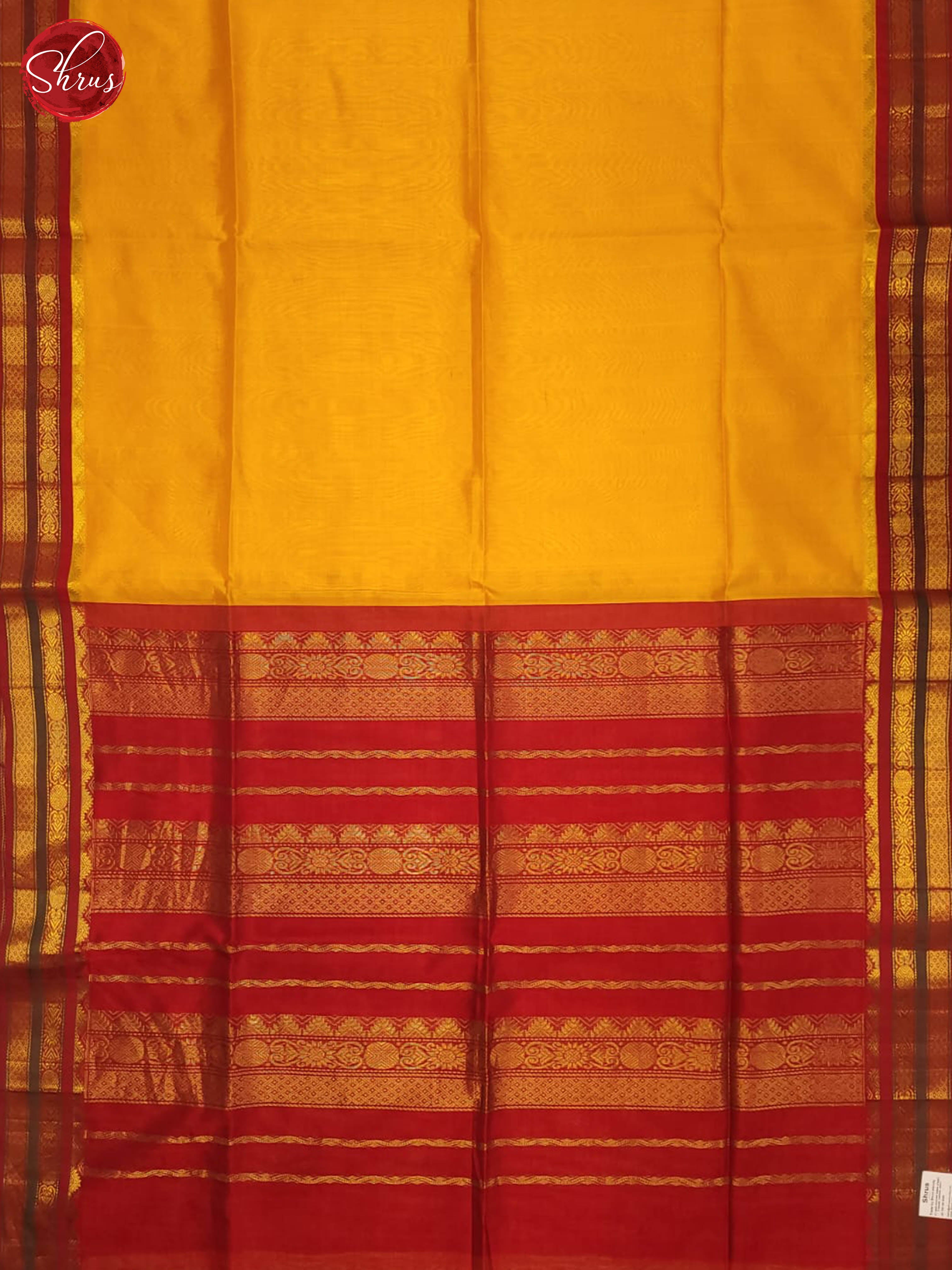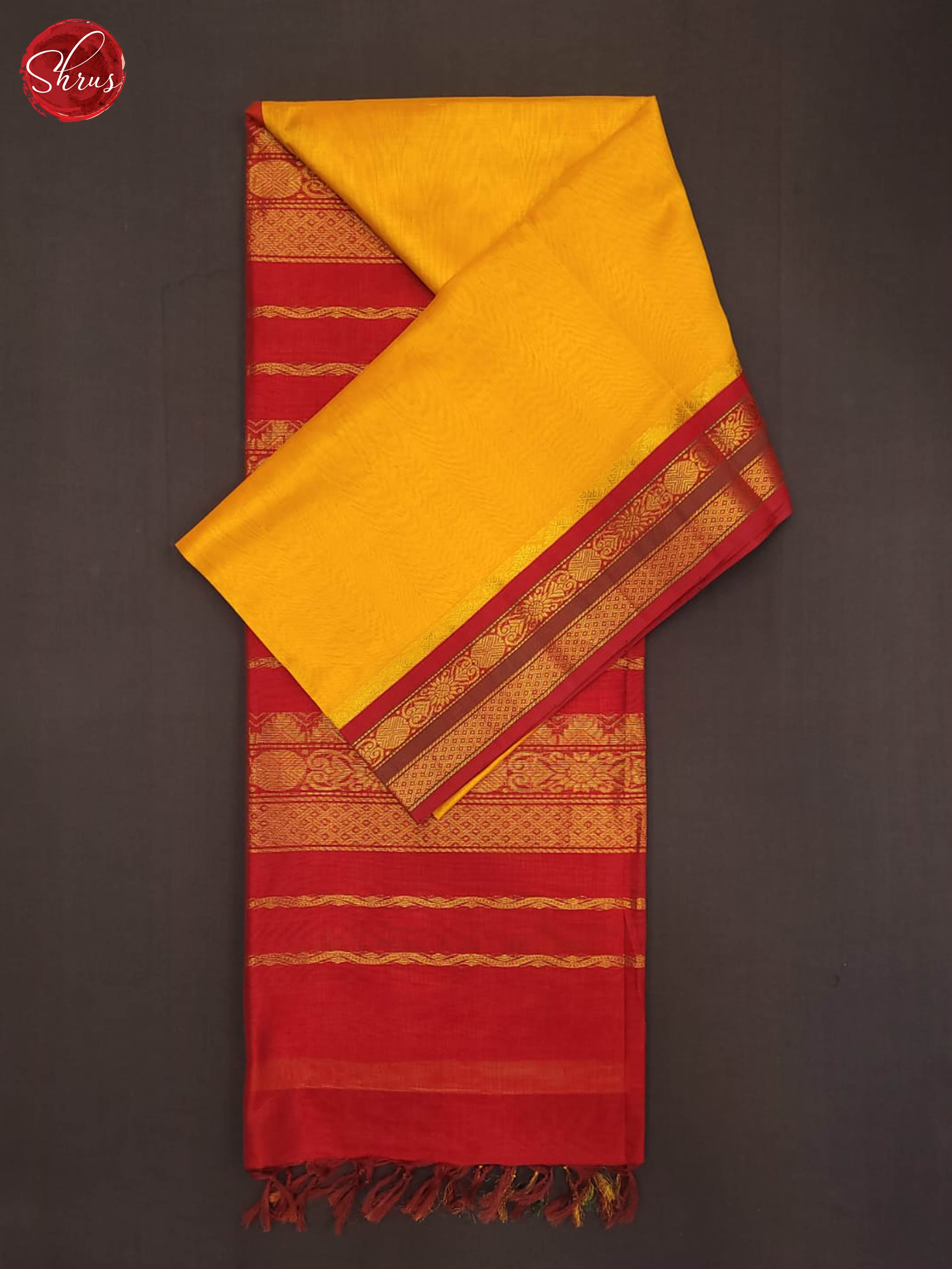 Bright Yellow Silk Cotton Saree enchants with plain Body & bounded by a Contrast Red Zari Border . The splendid Contrast Red zari woven brocade Pallu And plain Blouse with zari Border gives a chic twist