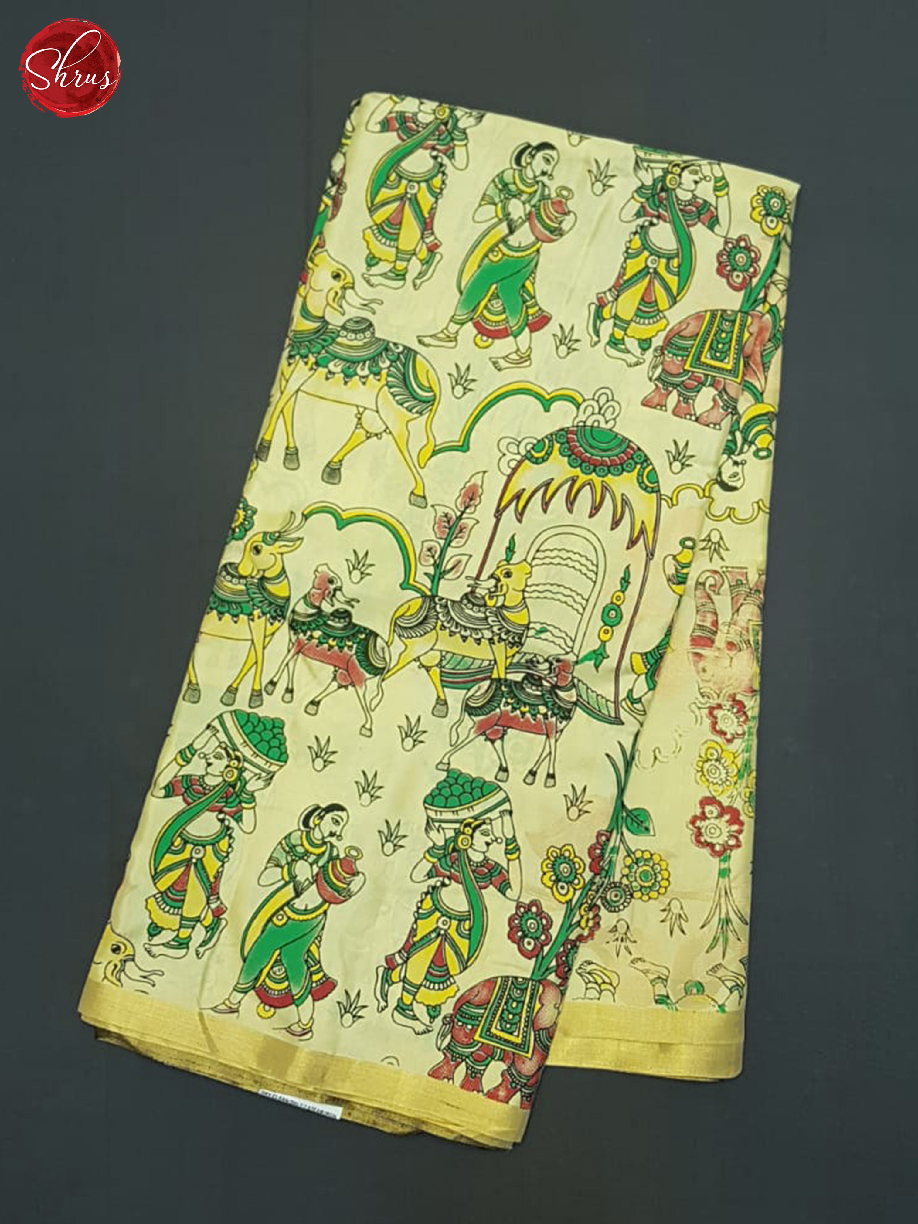 Cream & Brown - Softsilk-halfpure saree