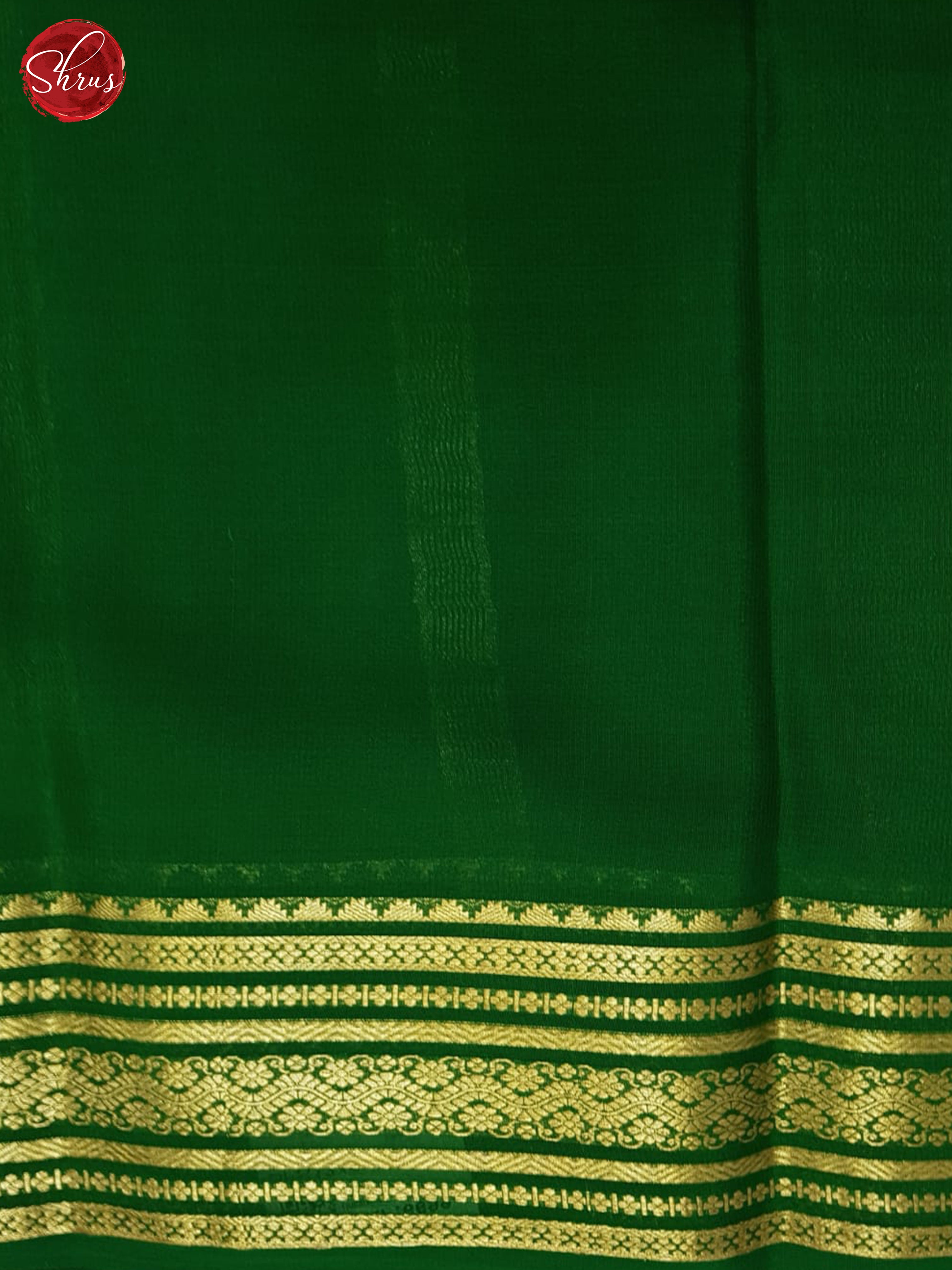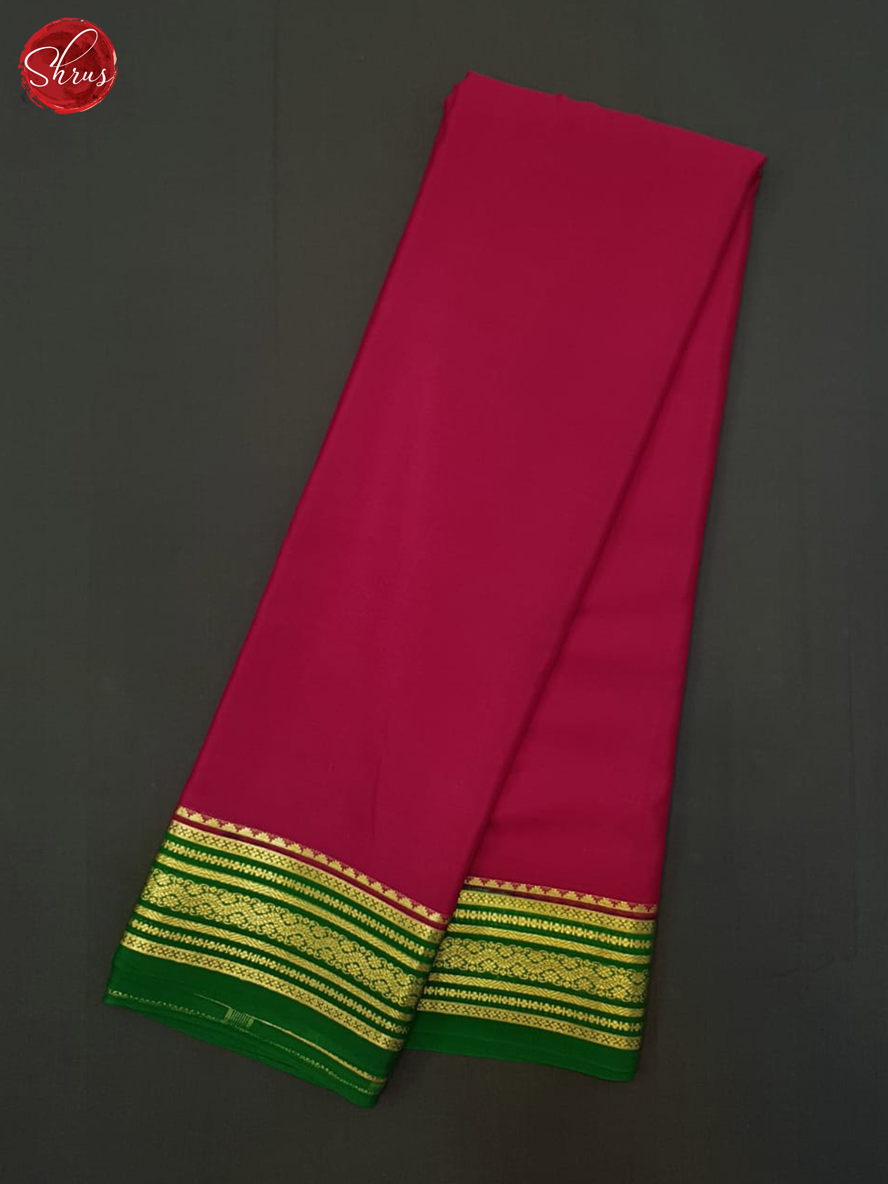 Beautiful Pink Mysore Silk Saree enchants with plain body & bounded with Green zari border . The contrast Green striped pallu complements. The Green plain blouse with Zari border is a beautiful finish.