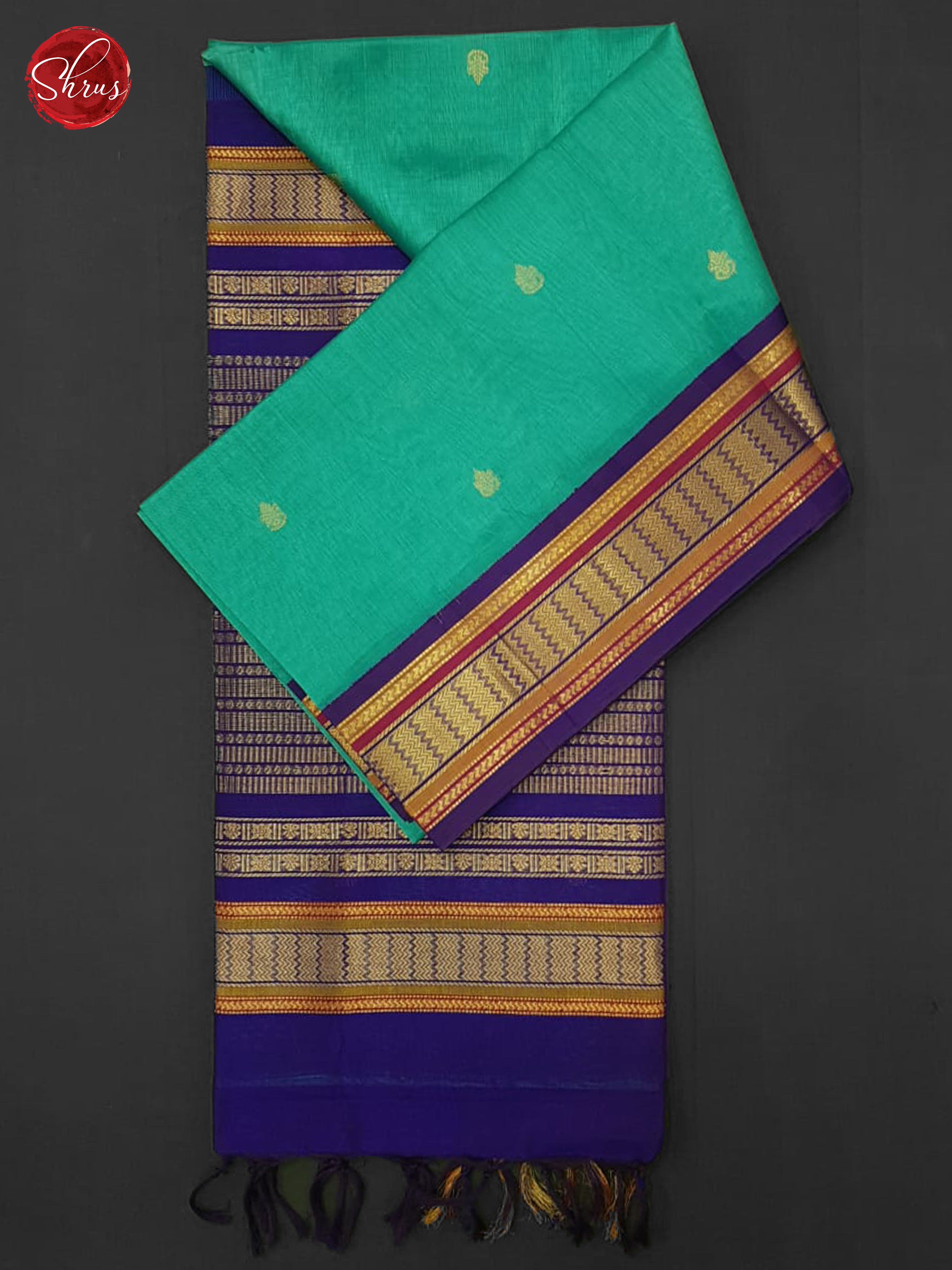 Pretty Blue Silk Cotton Saree enchants with zari woven buttas on the Body & bounded by a Contrast Purple Zari Border . The splendid Contrast purple zari woven brocade Pallu And butta Blouse with zari Border gives a chic twist
