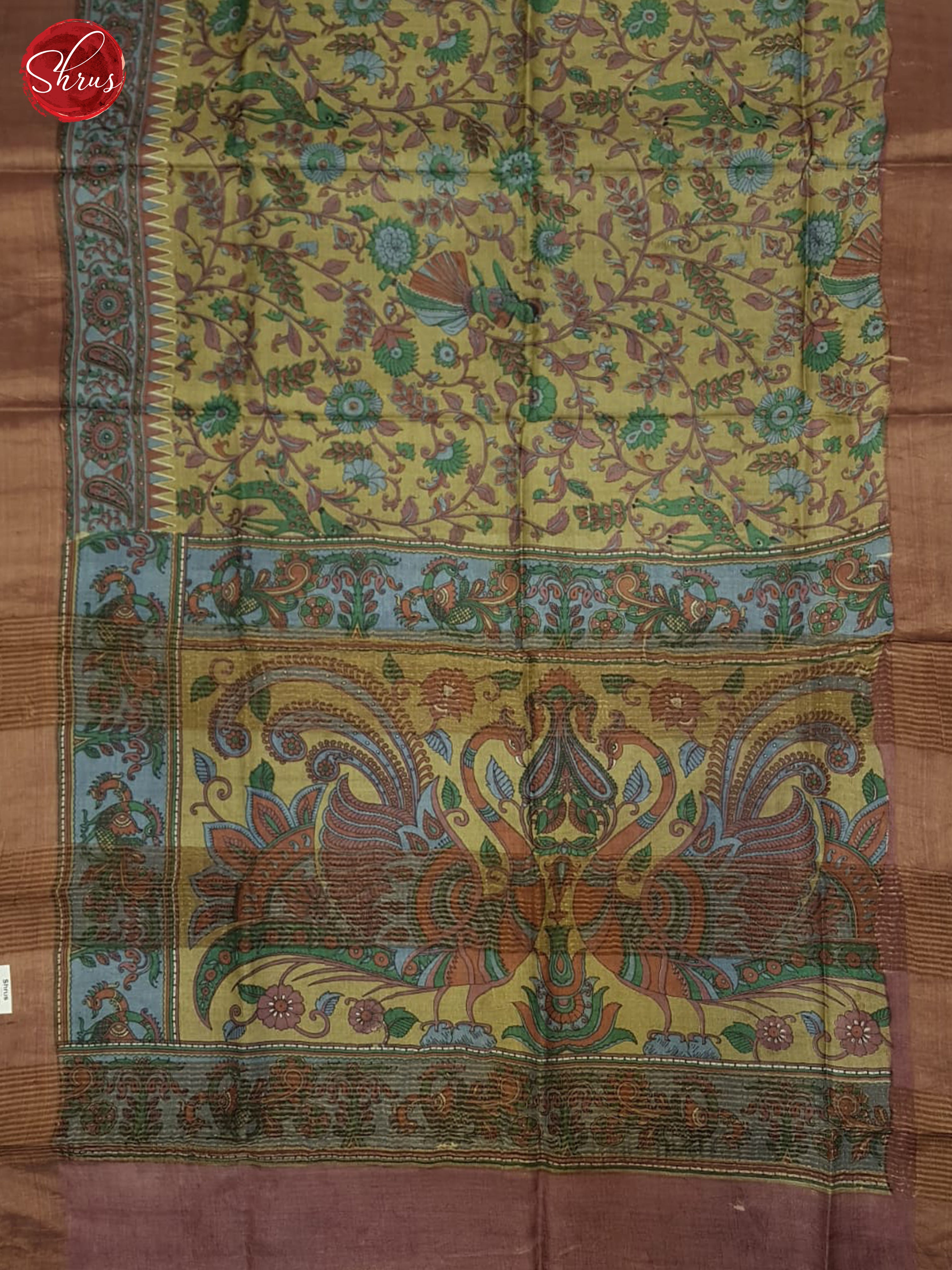 Very Pretty Beige Tussar saree enchants with floral print on the body & bounded with contrast Brown zari woven border .The rich self printed Pallu & plain Brown blouse with Zari Border completes the ensemble