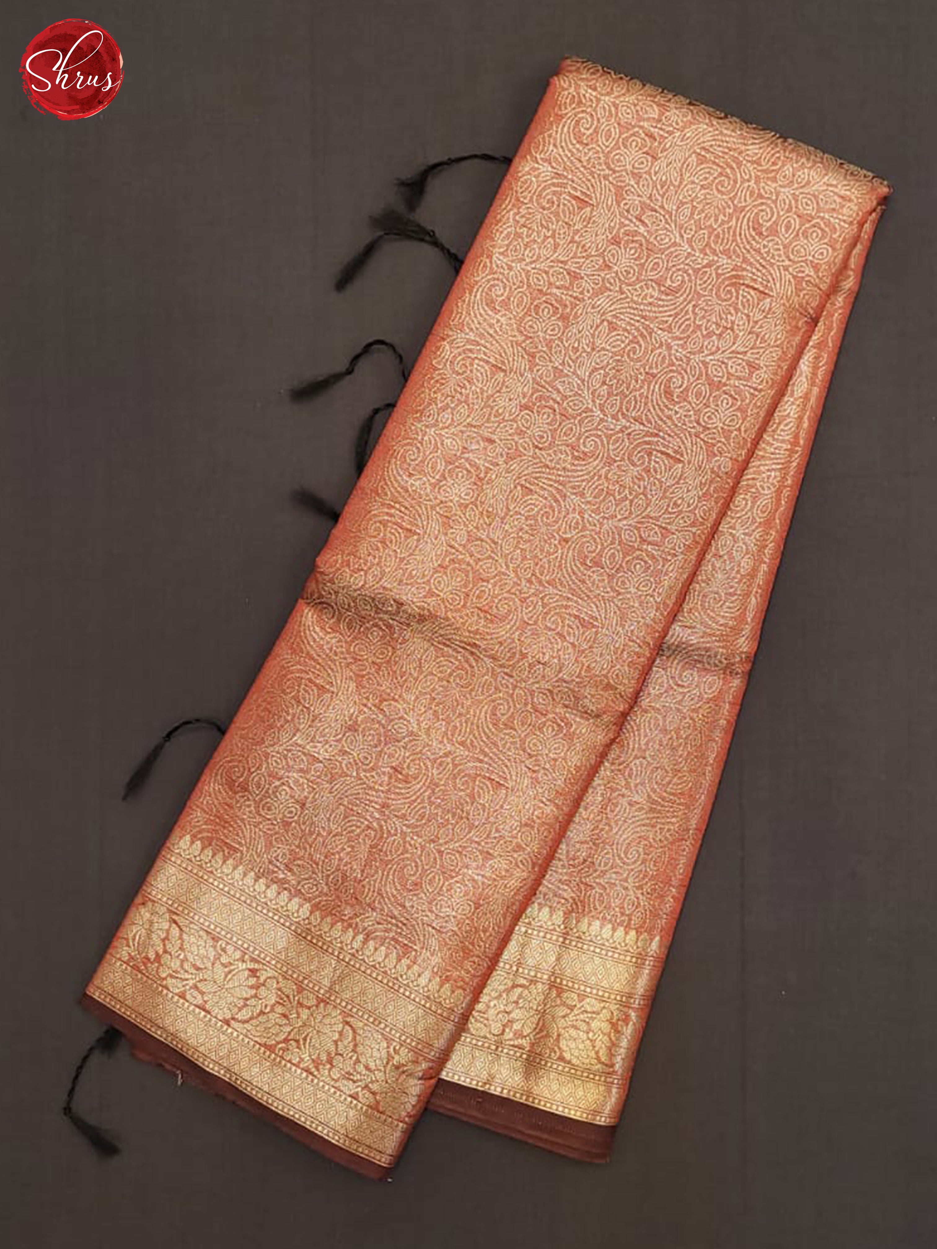 Glimmering Red e Semi Tissue Saree enchants with floral nestling on the Body & Bounded with self zari woven border & pallu . Comes with self tissue brocade Blouse with zari border complement beautifully