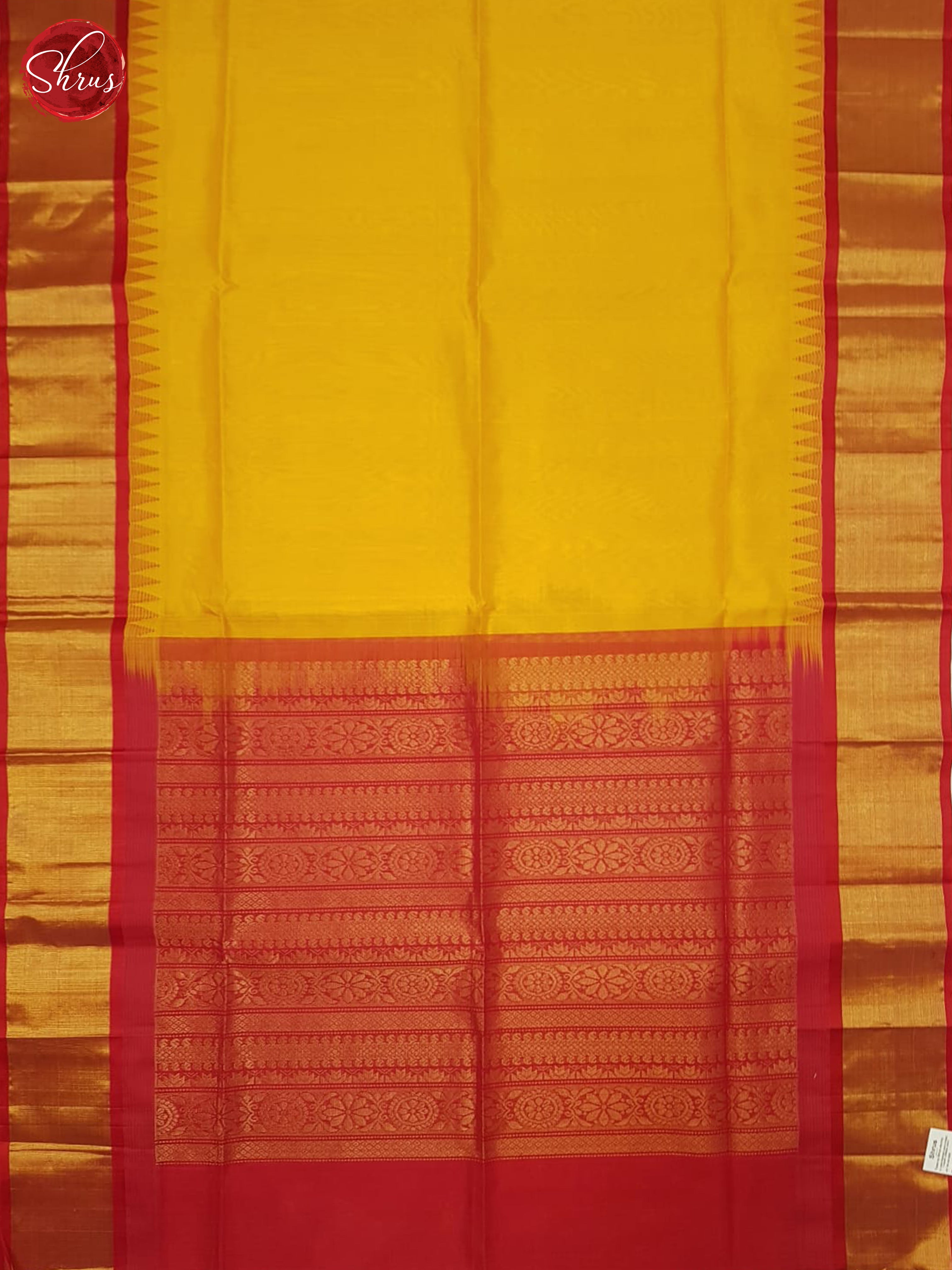A Lustrous Yellow Silk Cotton Saree enchants with plain Body . The delightful weave is beautifully complemented with a Red zari woven border & Pallu with brocade . The plain Red Blouse with zari border is a perfect finish