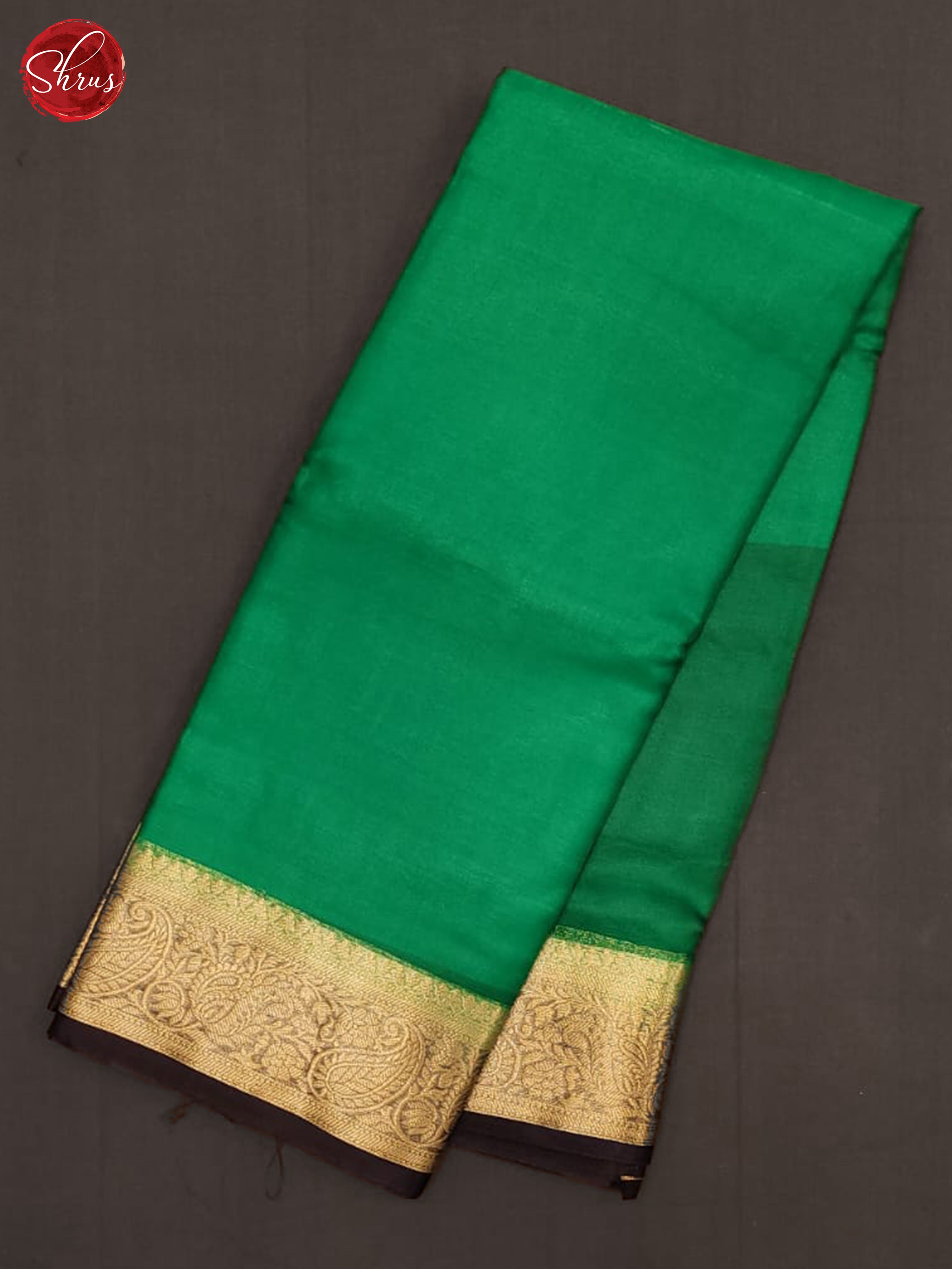 Pretty Green Semi Organza Silk saree enchants with plain body . The Black zari border & Pallu accentuate the classy weave. The plain Black blouse with zari border compliments.