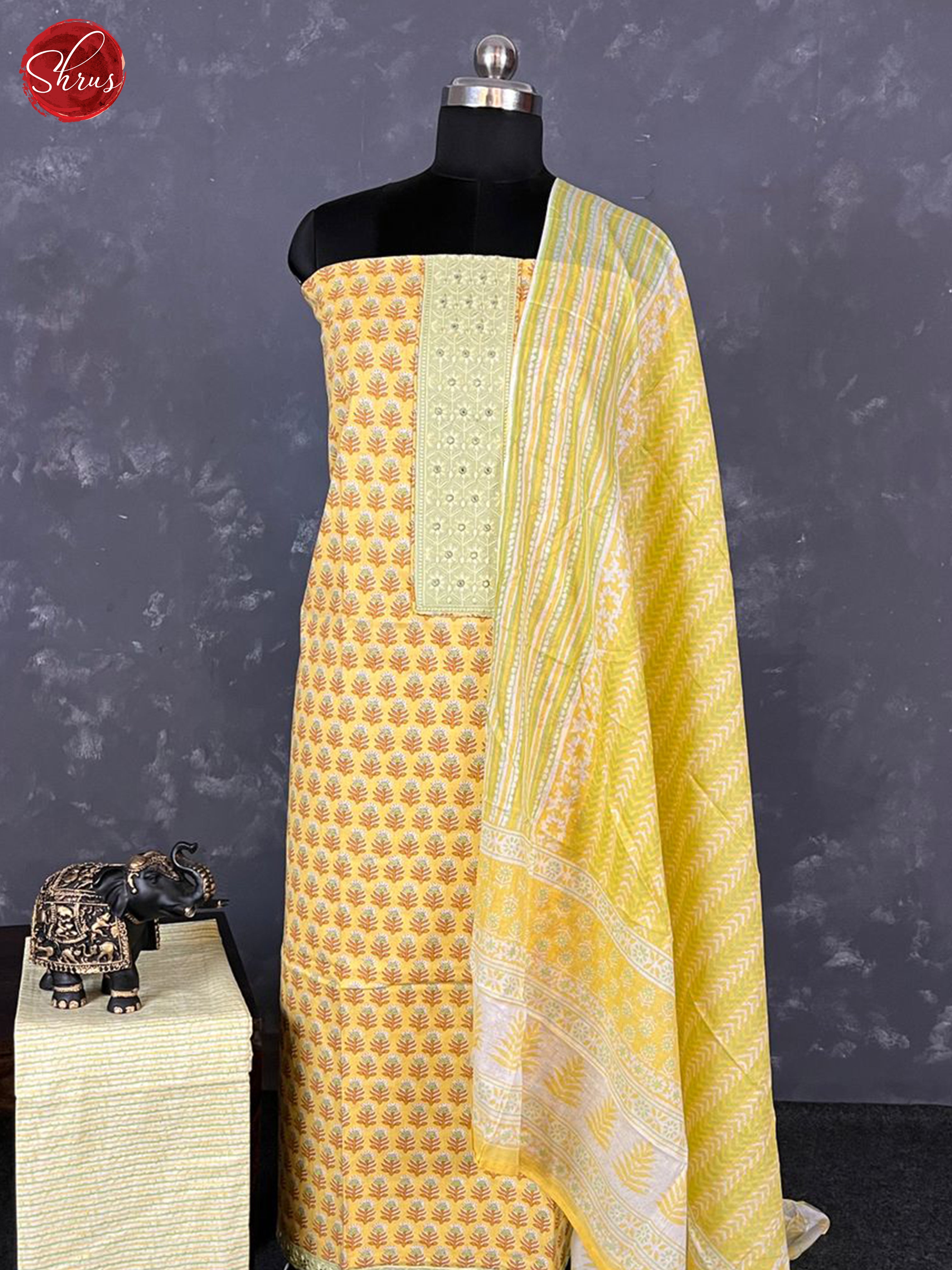 Elegant Yellow & Cream floral printed Cotton Salwar suit . Paired with lovely self bottom & printed dupatta completes the ensemble