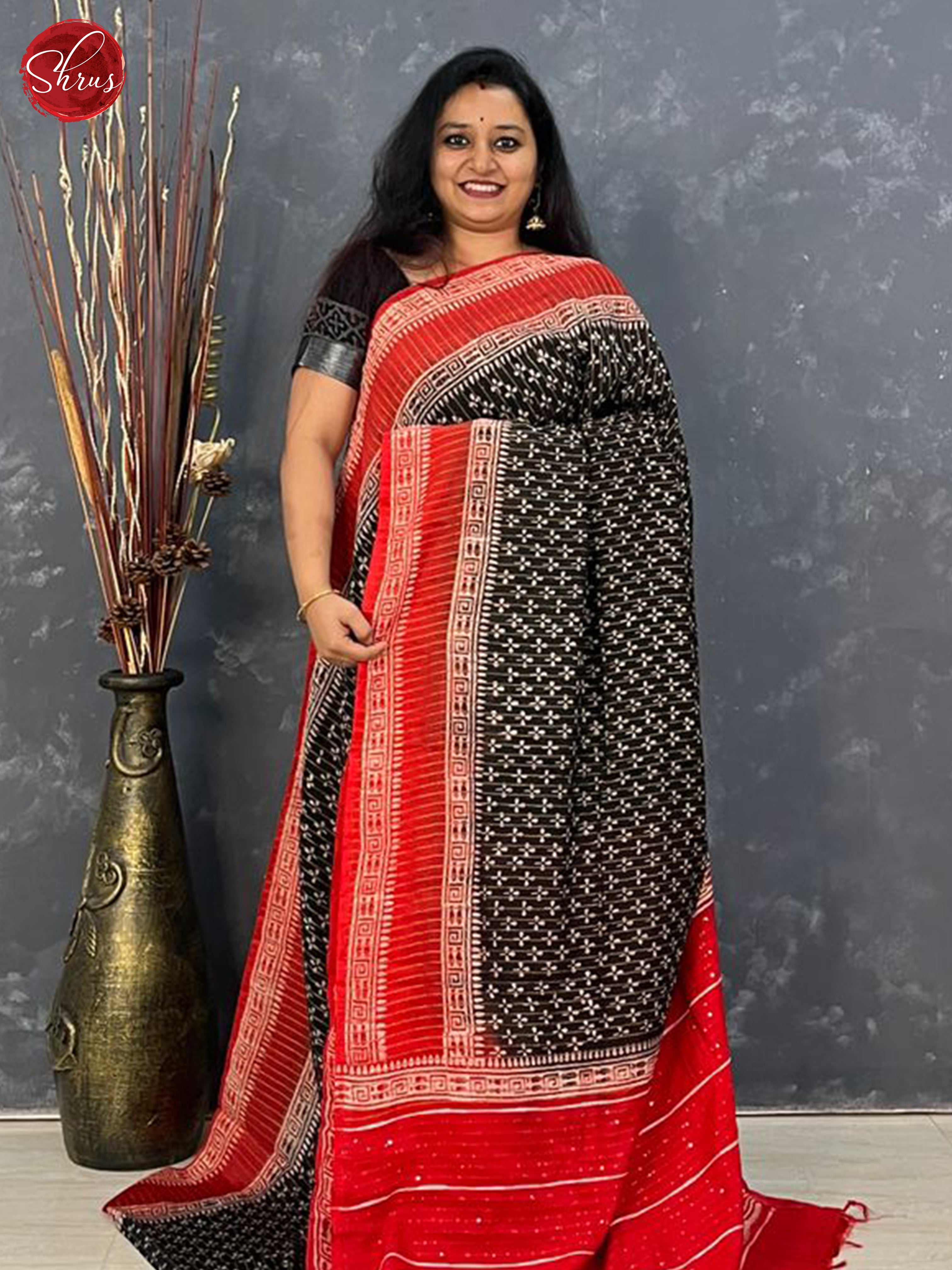 Black & Red- Semi gicha Saree