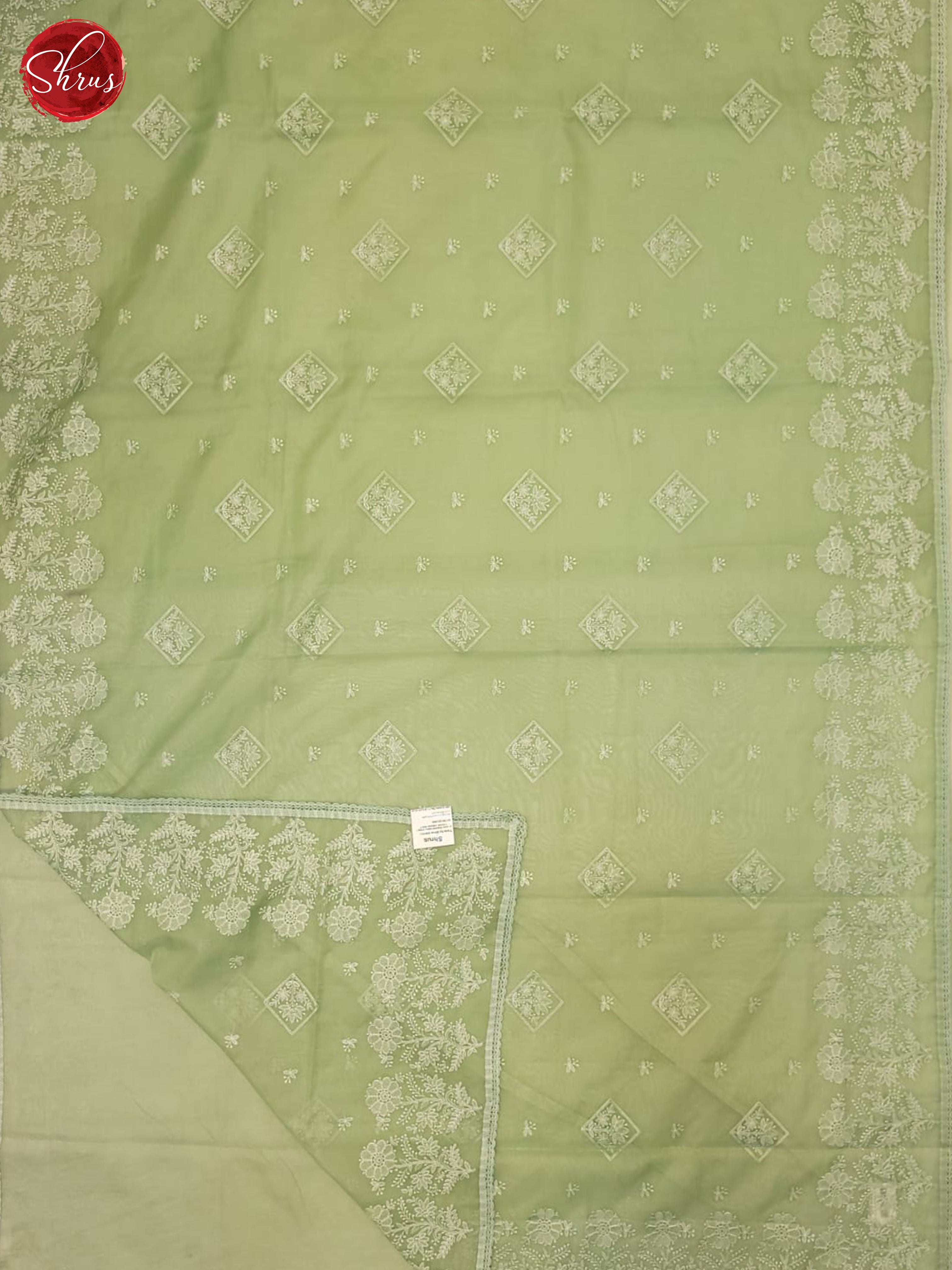 Elegant Green semi Organza saree with floral embroidery on the body The elegant weave is lent a mystical edge with a floral border . The self floral embroidery pallu adds to the allure. Comes with a plain Self blouse with zari border completes the ensemble