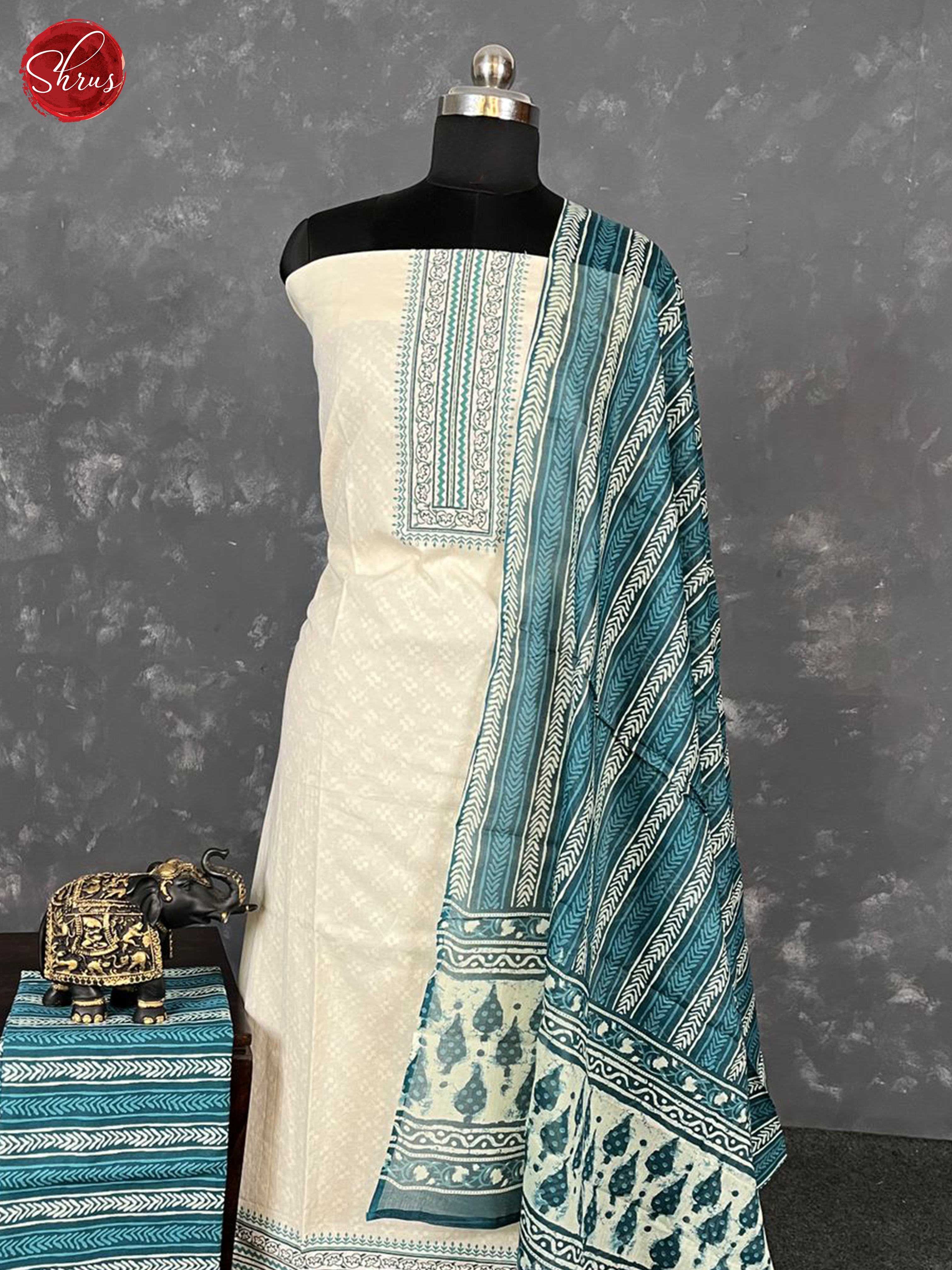 Cream & Blue - Unstitched Salwar