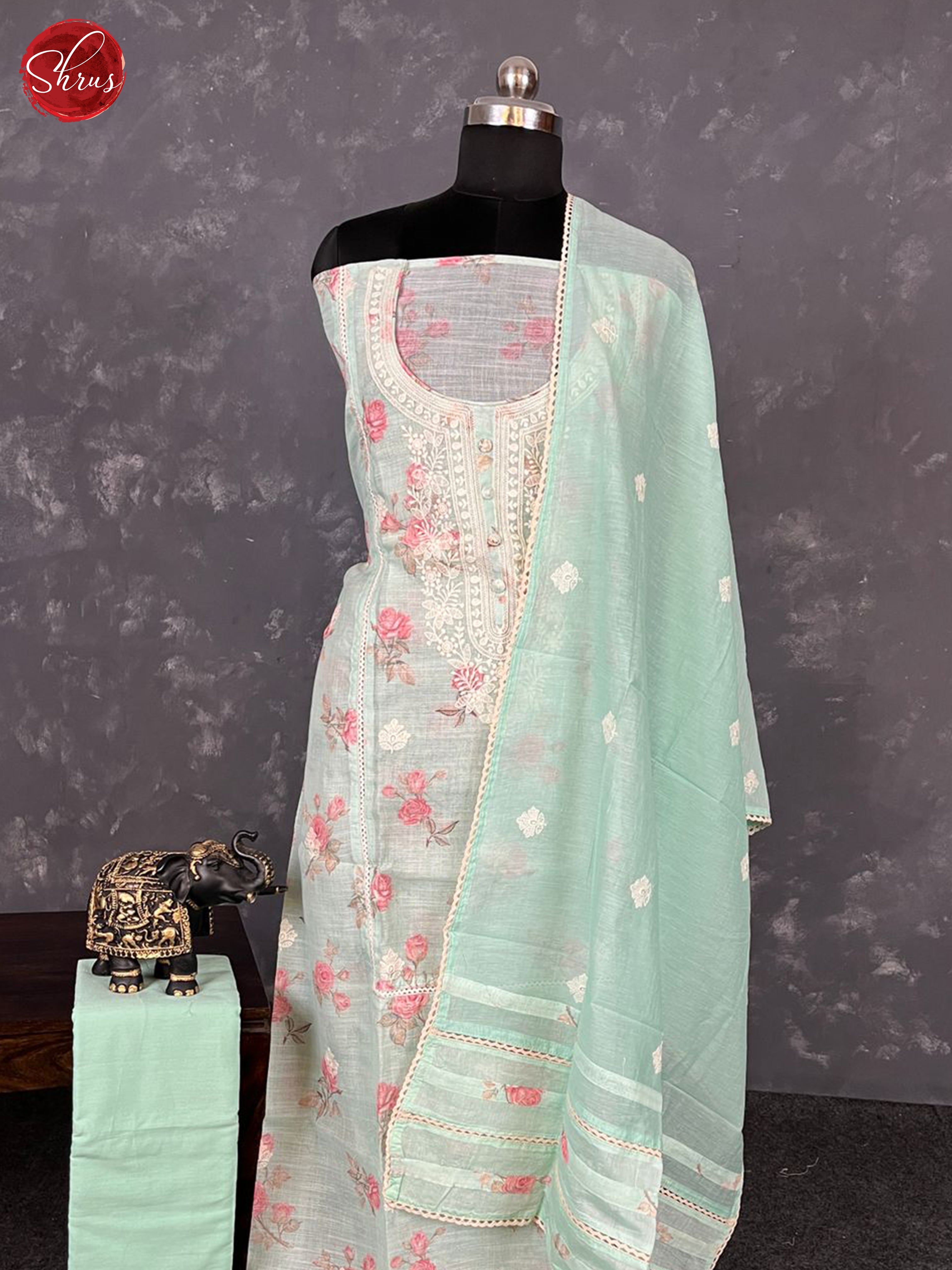 Very Pretty Green Unstitched Salwar suit with floral print , neck yoke on the tops . Paired with lovely self plain bottom & embroidery floral dupatta completes the ensemble