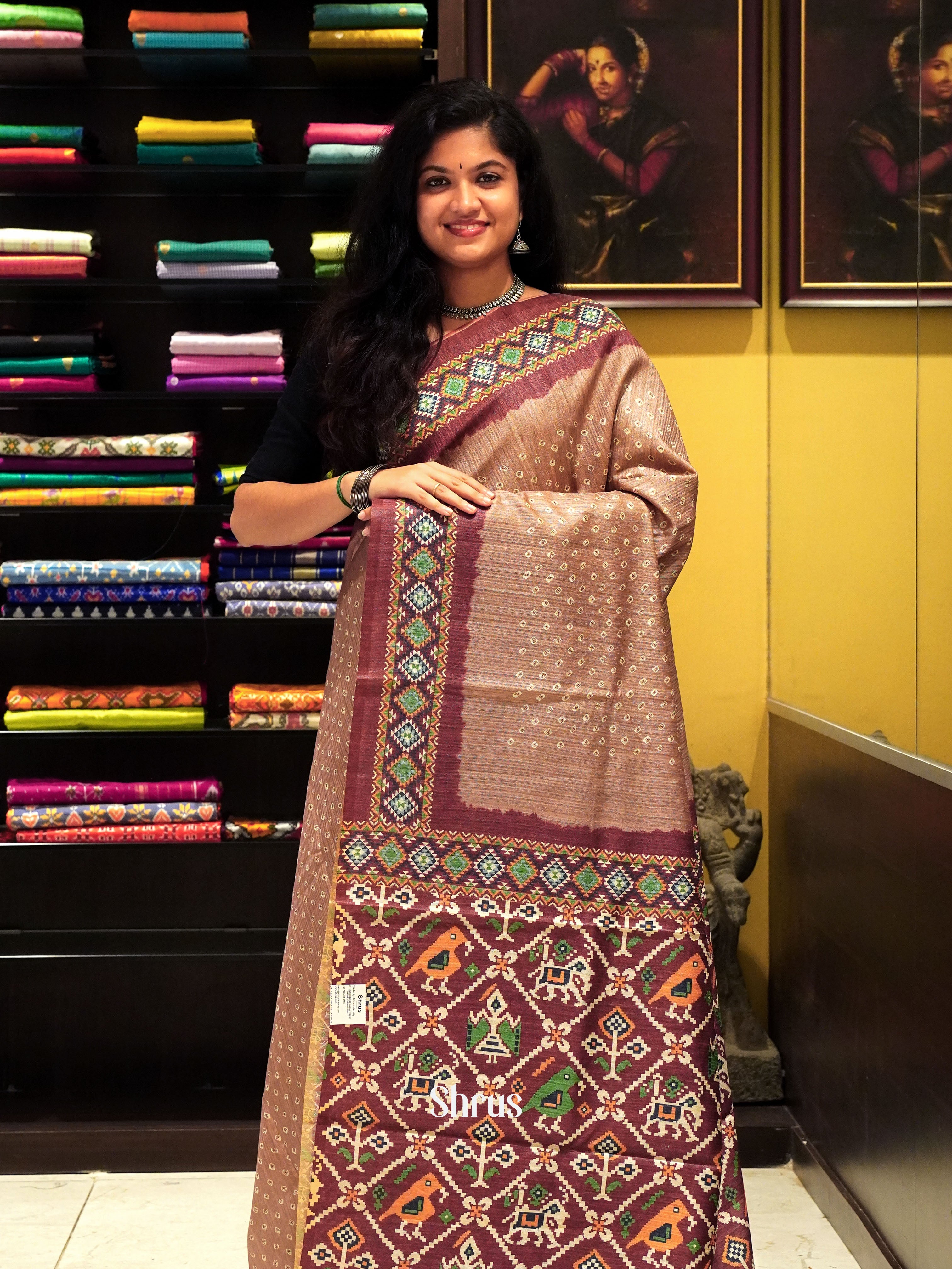 Light Brown & Brown- Semi Gicha Saree