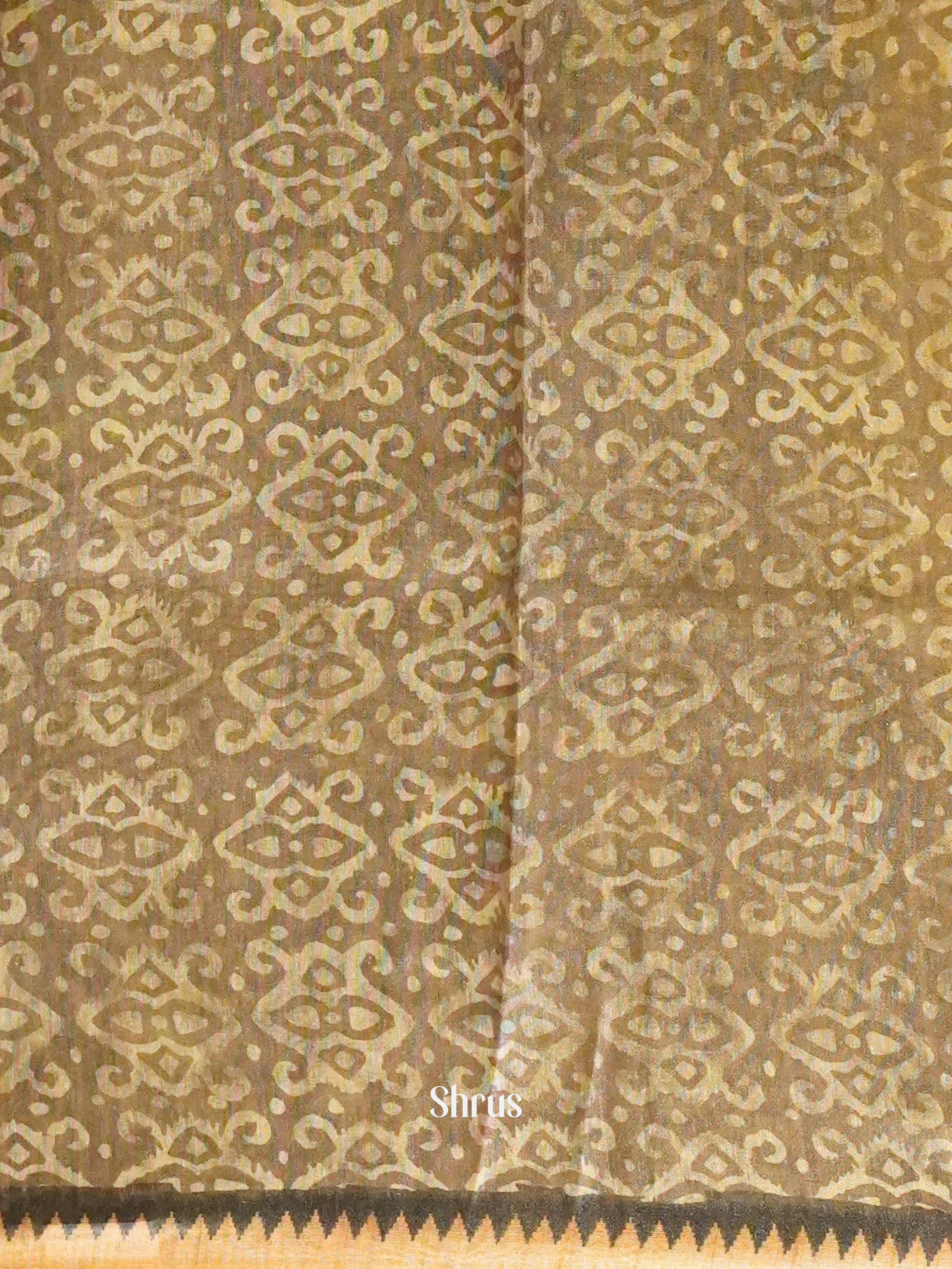 Pretty Light Brown Semi Gicha Saree enchants with printed body , & bounded with contrast Black zari thin border , printed pallu lends a beautiful compliment . Comes with printed self blouse completes the ensemble