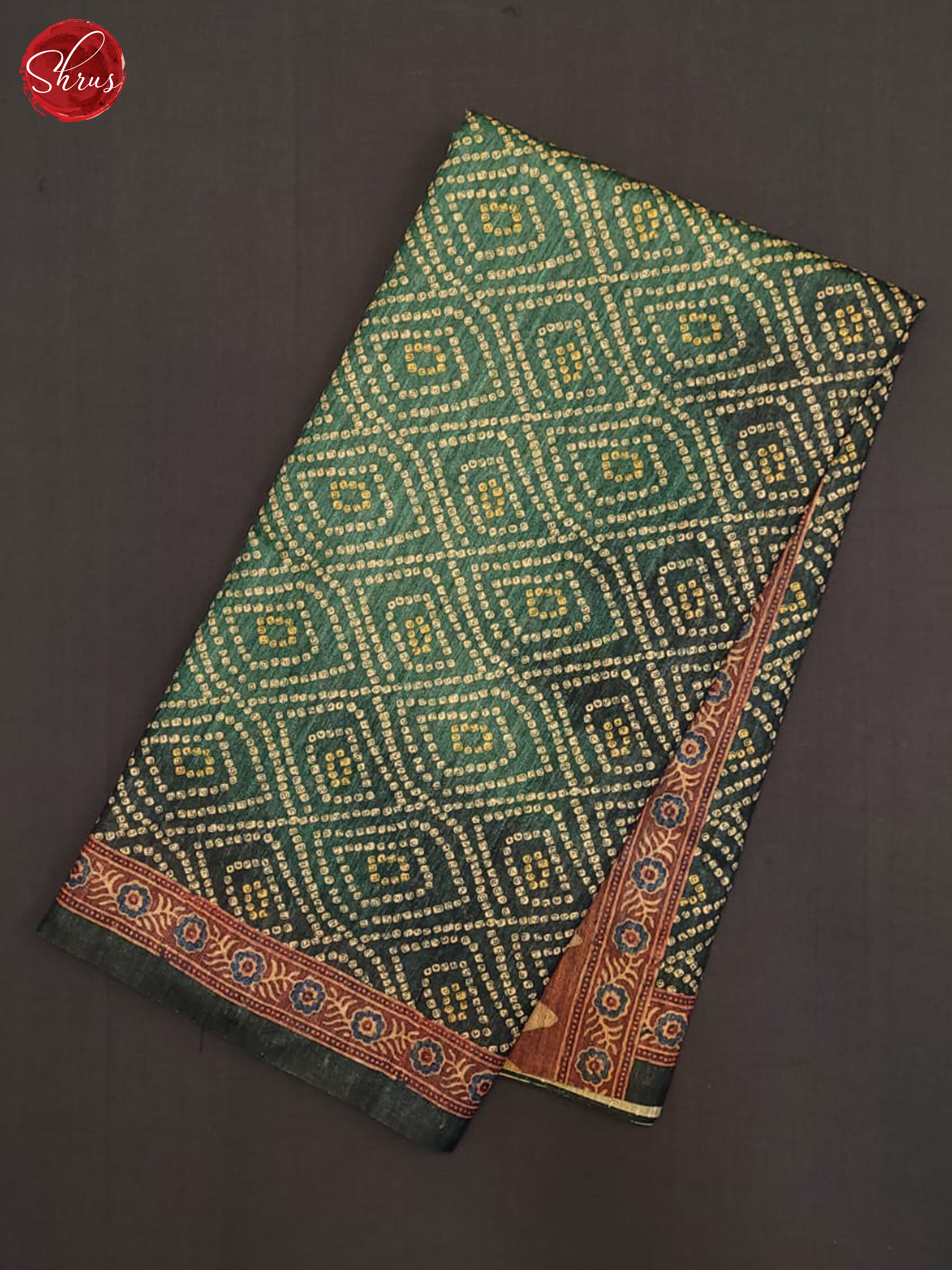 Pretty Green Semi Gicha Saree enchants with printed body , & bounded with Brown printed border , pallu lends a beautiful compliment . Comes with printed self blouse completes the ensemble